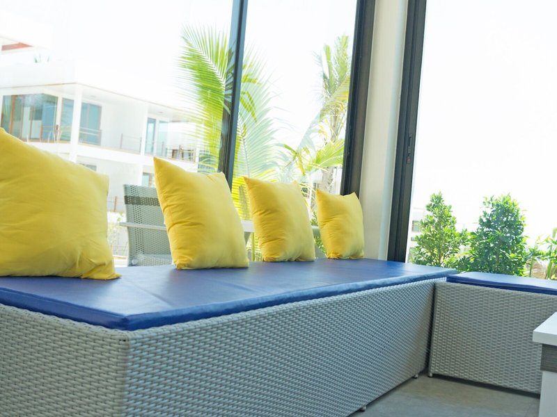 So wohnen Sie: Für angenehmes Raumklima in den Zimmern sorgt eine Klimaanlage. Auf dem Balkon oder der privaten Terrasse der meisten Zimmer können die Gäste entspannen und den Blick auf das Meer genießen. Die Zimmer verfügen über ein Doppelbett oder ein Kingsize-Bett. Zustellbetten können angefordert werden. Außerdem sind ein Safe, eine Minibar und ein Schreibtisch verfügbar. Besten Urlaubskomfort bieten ein Telefon, Sat-TV und WiFi. Zu den Vorzügen der Zimmer gehören Hausschuhe. In den Badezimmern stehen ein Haartrockner und ein Telefon für den täglichen Gebrauch bereit. Für besonderen Komfort in den Badezimmern sorgt eine Auswahl an Handtüchern. Das Resort bietet Familien- und Nichtraucherzimmer.