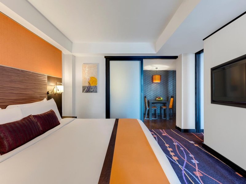 Das bietet Ihre Unterkunft: Das Hotel bietet 96 Zimmer auf 11 Etagen, die mit einem Aufzug erreichbar sind. Englischsprachiges Personal an der Rezeption im Empfangsbereich steht zur Seite beim Ein- und Auschecken. Eine Gepäckaufbewahrung, ein Safe, eine Wechselstube und ein Geldautomat stehen als Serviceleistungen zur Verfügung. WLAN ist in den öffentlichen Bereichen verfügbar. Hilfestellung bei der Buchung von Ausflügen wird am Tourdesk geboten. Die Unterbringung verfügt über eine Reihe von behindertengerechten Annehmlichkeiten. Das Haus verfügt über rollstuhlgerechte Einrichtungen. Behagliche Atmosphäre schafft ein Kamin. Geschäfte sind ebenfalls vorhanden. Zur weiteren Einrichtung des Hotels zählt ein TV-Raum. Bei einer Anreise mit dem Auto können die Gäste dieses in einer Garage (ohne Gebühr) oder auf dem Parkplatz parken. Zu den gebotenen Leistungen gehören ein 24h-Sicherheitsdienst, ein Babysitterservice, eine Kinderbetreuung, eine Autovermietung, medizinische Betreuung, ein Transferservice, ein Zimmerservice, ein Weckdienst, ein Wäscheservice, ein Friseur, eine Münzwäscherei und ein eigener Shuttlebus. Kostenfrei steht Gästen die Tageszeitung zur Verfügung. Im Geschäftsbereich (Business-Center) sind Faxgerät und Projektor vorhanden.