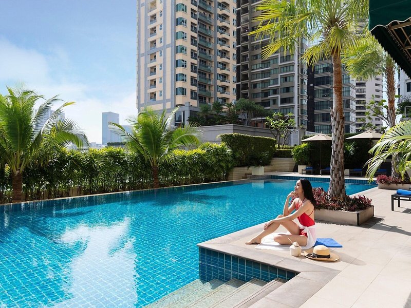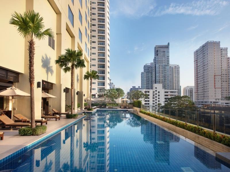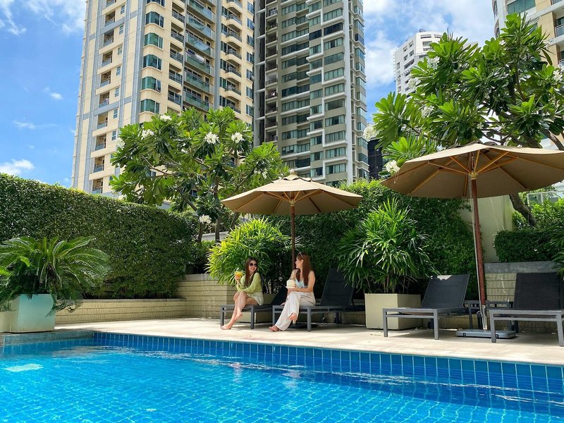 Lage & Umgebung Das Hotel befindet sich in einer erstklassigen Umgebung am Sukhumvit Soi 24, in unmittelbarer Nähe zu den Büros und diversen Sehenswürdigkeiten Bangkoks wie das Tagungszentrum Queen Sirikit Convention Centre, dem Wochenendmarkt Chatuchak, das Jim Thomson House und der Erawan-Schrein. Der Große Palast und Wat Pho sind etwa 20 Fahrminuten entfernt. Die nächste Metrostation ist etwa 10 Gehminuten entfernt, und bis zum Flughafen Suvarnabhumi sind es ungefähr 35 km.