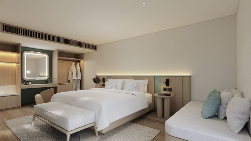 Deluxe: Ausgestattet mit Dusche, WC, Föhn, Bademantel, Slipper, Klimaanlage, Safe, TV, Kaffee-/Teezubereiter, Kühlschrank sowie einem möblierten Balkon (DD2/DD1). (Zimmergröße ca. 42 m²)