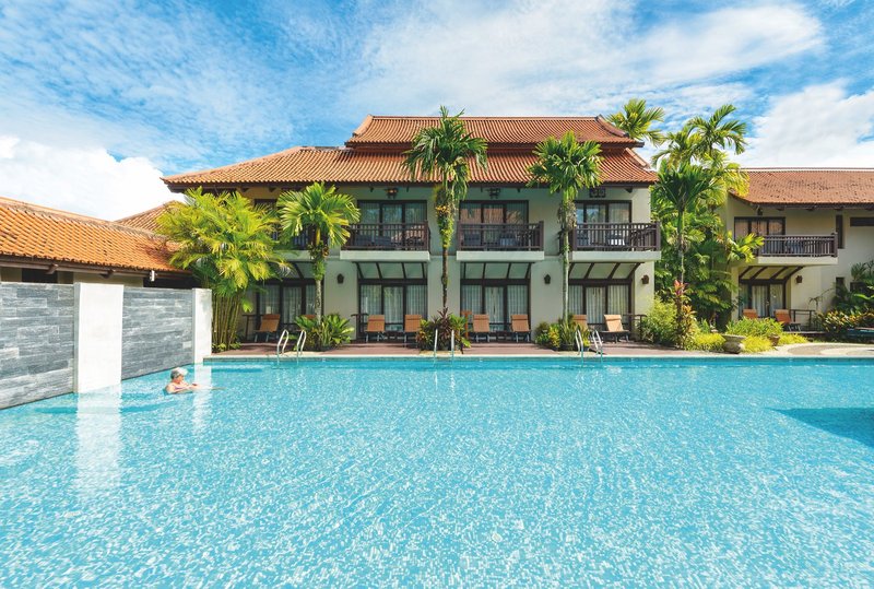 Ausstattung: Die weitläufige, im thailändischen Stil gehaltene Resortanlage verfügt über insgesamt 77 Zimmer, die sich innerhalb der idyllischen Gartenanlage verteilen. Zu den Einrichtungen gehören ein Empfangsbereich mit 24- Stunden- Rezeption, Sitzgelegenheiten und ein Internetzimmer (kostenfrei). Für das leibliche Wohl sorgen 2 Restaurants und 2 Bars: Das Frühstücksrestaurant "Bhandari" serviert bei traumhaften Poolblick amerikanisches Frühstück. Im "Le Siam" Restaurant werden traditionelle, asiatische und internationale Spezialitäten zubereitet. Kühle Getränke und leckere Cocktailvariationen werden in der Poolbar und in der "Big Tree Bar" gereicht. In der gepflegten Außenanlage laden der große Salzwasser-Swimmingpool mit integriertem Kinderbecken, Jacuzzi und Sonnenterrassen zum Erholen und Verweilen ein. Liegen und Sonnenschirme stehen am Pool kostenfrei zur Verfügung.