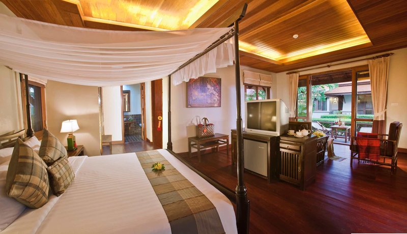 Siam Chalet: Die Zimmer liegen in 2- stöckigen Gebäuden, sind ca. 55 m² groß und verfügen über ein Bad mit Dusche/WC, Föhn, Bademäntel, Klimaanlage, Sitzecke, Telefon, Sat.-TV, Safe, Minibar (gg. Geb.) und Balkon oder Terrasse (2CH/1CH).