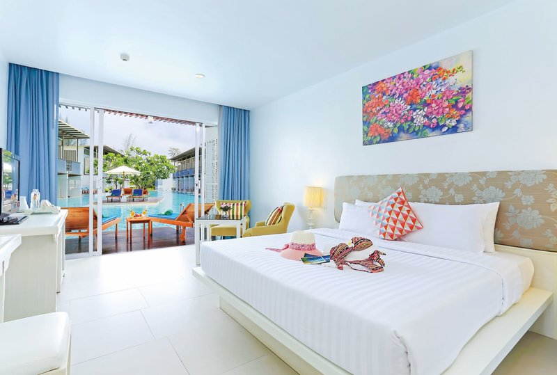 Deluxe Pool Access: Gleiche Ausstattung wie die Deluxe Poolblick Zimmer, jedoch größer (ca. 42 m²), liegen im neueren Teil des Resorts im Erdgeschoss mit direktem Zugang zur Poollandschaft (DPA/PA1).