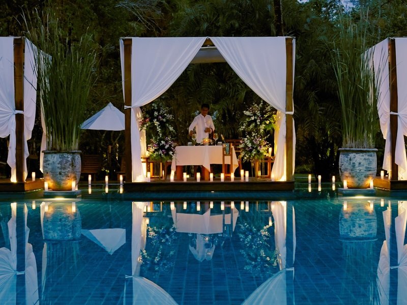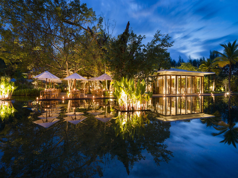 Lage & Umgebung In Khaolak, Phang Nga, bietet das Luxusresort tropische Gärten und einen hoteleigenen Zugang zu einem ca. 11 km langen, abgeschiedenen Strand „White Sand Beach" an der Andamanensee. Umgeben von fünf Nationalparks, nah zu den Similan-Inseln, eines der zehn besten Tauchreviere weltweit und den Surin-Inseln, ist es ideal für Wassersport, Tauchen und Golf.