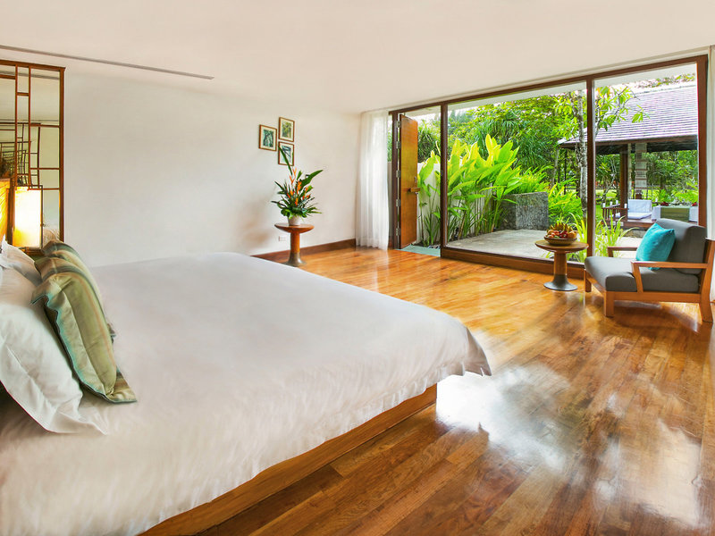- Garden Residence (DZX1), Doppelzimmer, Mindestalter im Zimmer: 10 Jahre, Gartenseite, Gartenblick, ca. 95 m², Gesamtanzahl der Räume in diesem Zimmertyp: 1, Aufteilung wie folgt: kombiniertes Wohn-/Schlafzimmer, 1 King Size Bett, 1 Zustellbett, Klimaanlage: ohne Gebühr, individuell regelbar, Fußboden: Parkett, Safe: ohne Gebühr, Sofa, Schreibtisch, Kaffeemaschine, Kaffee-/Teezubereiter, Wasserkocher, Minibar: gegen Gebühr, Softdrinks: gegen Gebühr, Wasser: gegen Gebühr, alkoholische Getränke: gegen Gebühr, Snacks: gegen Gebühr, Minibarauffüllung: täglich, Telefon, Internet: WLAN/WiFi: ohne Gebühr, Fernseher: Flatscreen, im Schlafzimmer, deutsches Programm, Sat-TV, Roomservice: täglich, gegen Gebühr, Reinigungsservice: täglich, ohne Gebühr, Dusche, Regendusche, Badewanne, WC, Bademantel: ohne Gebühr, Slipper: ohne Gebühr, Föhn, Kosmetikspiegel, Terrasse: mit Sitzgelegenheit, mit Privat-Garten