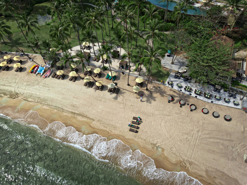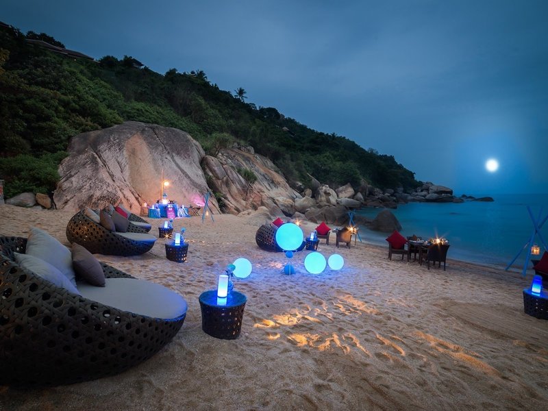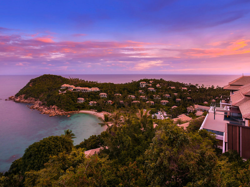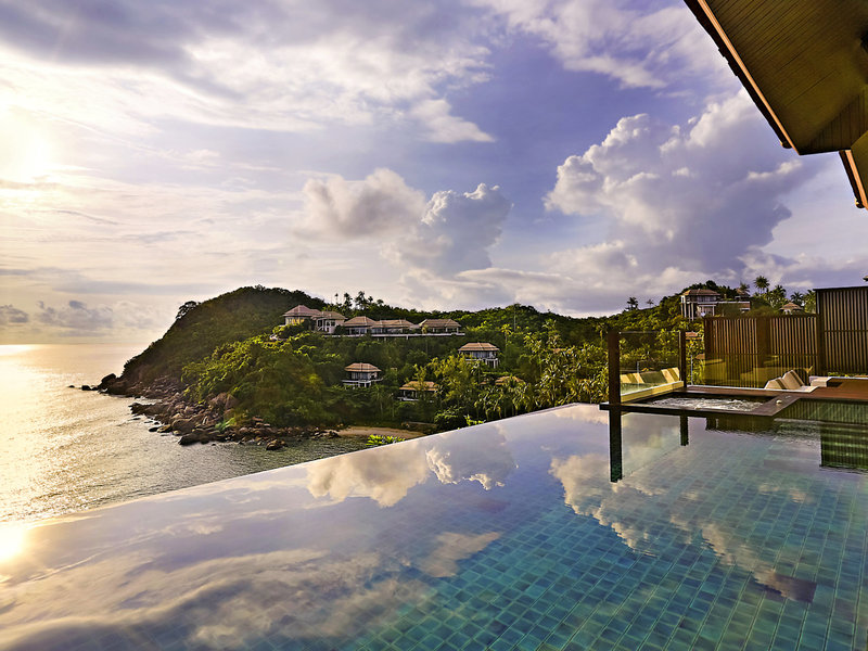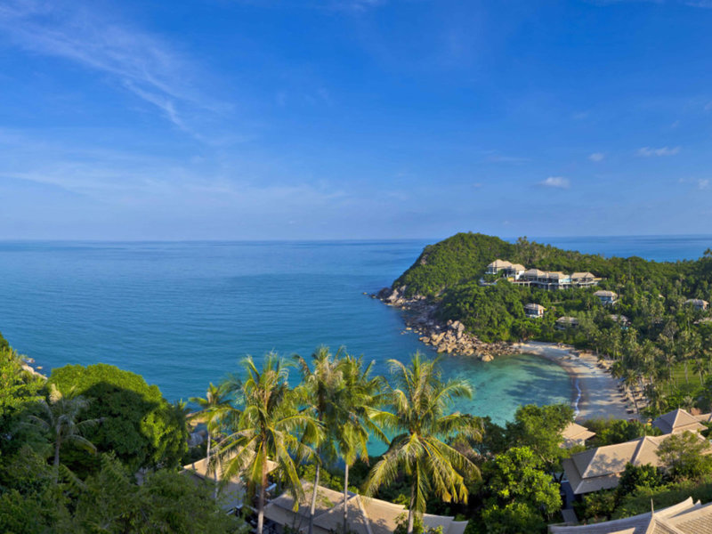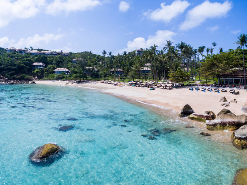 Lage & Umgebung Das luxuriöse Resort liegt an der Südostküste von Koh Samui, an einen Hang geschmiegt. Umgeben von üppiger Vegetation, türkisfarbenem Wasser und einem weißen Sandstrand erwartet den Gast hier ein Ort der Erholung und der absoluten Ruhe. Bei Ebbe ist Baden nur eingeschränkt möglich. Der Strand ist in der Regenzeit bei Flut sehr schmal.