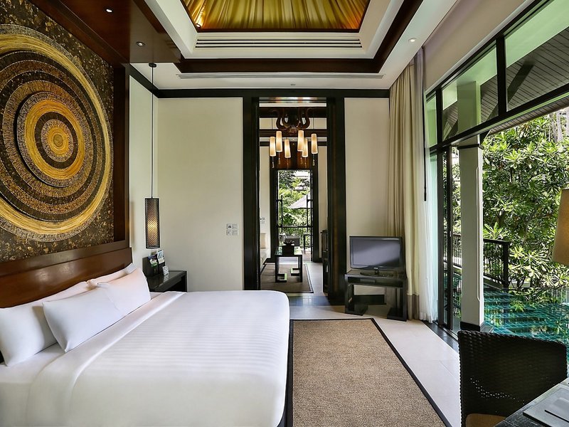 - Wellbeing Sanctuary Pool Villa (VIG1), Villa, Nichtraucherzimmer, Ostseite, Gartenseite, Gartenblick, Blick auf garden view, ca. 130 - 155 m², Gesamtanzahl der Räume in diesem Zimmertyp: 1, Aufteilung wie folgt: Wohnzimmer, 1 Schlafzimmer, 1 King Size Bett, 1 Schlafsofa, 1 Zustellbett, Babybett: ohne Gebühr, Anfrage & Reservierung notwendig, Klimaanlage: ohne Gebühr, individuell regelbar, kalt, Fußboden: Fliesenboden, Safe: ohne Gebühr, Sitzecke, Sofa, Schreibtisch, Bügelbrett, Nespressomaschine, Kaffee-/Teezubereiter, Wasserkocher, Esstisch, Minibar: gegen Gebühr, Softdrinks: gegen Gebühr, Wasser: ohne Gebühr, alkoholische Getränke: gegen Gebühr, Snacks: gegen Gebühr, Minibarauffüllung: täglich, Telefon, Internet: WLAN/WiFi: ohne Gebühr, Fernseher: Flatscreen, im Wohnbereich, im Badezimmer, deutsches Programm, Kabel-TV, Roomservice: täglich, gegen Gebühr, Butlerservice: täglich, ohne Gebühr, Reinigungsservice: täglich, ohne Gebühr, Tageszeitung, Badewanne oder Dusche, separate Dusche, Regendusche, Badewanne im Zimmer, separates WC, Bademantel: ohne Gebühr, Slipper: ohne Gebühr, Kosmetikspiegel, Balkon oder Terrasse: mit Liegestühlen, mit Liegen, mit Sitzgelegenheit, mit Private Pool