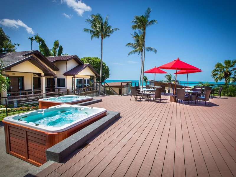 Sport & Fitness: Neben Innen- und Außenpools gibt es einen Kinderbadebereich. Erfrischende Getränke an der Pool-/Snackbar und wohlige Entspannung im Whirlpool bringen alle Wasserratten in die beste Stimmung. Auf der Sonnenterrasse mit Liegestühlen und Schirmen lässt sich der Urlaub genießen. Wem der Sinn nach Bewegung steht, werden Beachvolleyball, Golfen und Angeln angeboten. Mit Kanufahren, Kajakfahren, Schnorcheln und Tauchen kommen auch Wassersportfreunde auf ihre Kosten. Fitnessstudio und Aerobic sind Teil des Sport- und Freizeitangebots der Unterbringung. In der Anlage werden verschiedene Wellnessangebote wie Spa, Sauna, Dampfbad und Massage-Anwendungen offeriert. Ein Animationsprogramm, ein Miniclub und Live-Musik sorgen für besten Freizeitspaß.