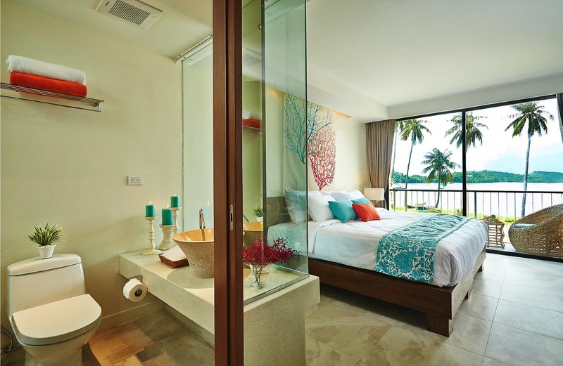 In Thailand können Waschbecken oder auch Badewannen/Whirlpools offen ohne räumliche Trennung im allgemeinen Wohnbereich des Hotelzimmers integriert sein.