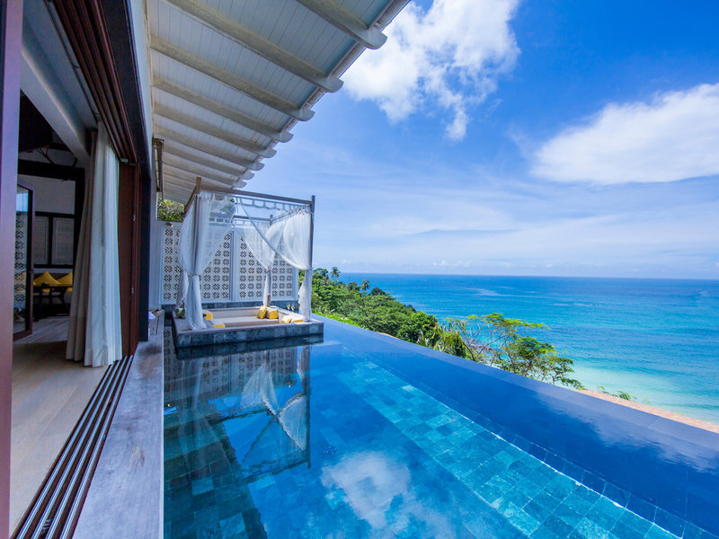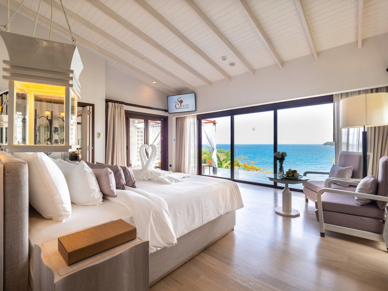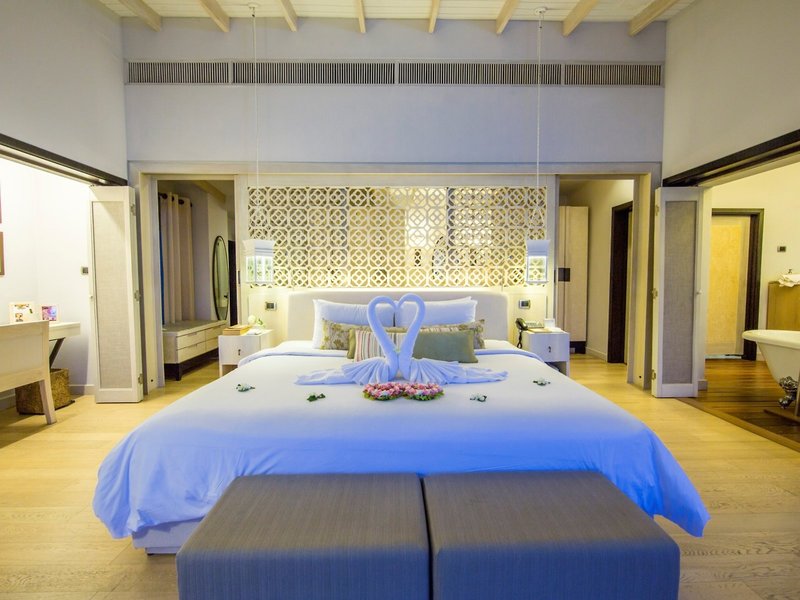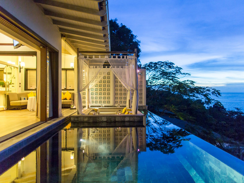 - Seaview Pool Villa Romance (VIM2), Doppelzimmer, Mindestalter im Zimmer: 13 Jahre, Meerseite, Meerblick, ca. 130 m², Gesamtanzahl der Räume in diesem Zimmertyp: 1, Aufteilung wie folgt: kombiniertes Wohn-/Schlafzimmer, Wohnzimmer, Klimaanlage: individuell regelbar, Fußboden: Parkett, Safe, Deckenventilator, Sofa, Schreibtisch, Bügeleisen, Bügelbrett, Kühlschrank: ohne Gebühr, Kaffee-/Teezubereiter, Minibar: gegen Gebühr, Softdrinks: gegen Gebühr, Wasser: ohne Gebühr, alkoholische Getränke: gegen Gebühr, Snacks: gegen Gebühr, Telefon, Internet: WLAN/WiFi: ohne Gebühr, Fernseher: Flatscreen, deutsches Programm, Kabel-TV, DVD-Player, Roomservice: täglich 24 Stunden, Reinigungsservice: täglich, separate Dusche, Regendusche, Badewanne, WC, Bademantel, Slipper, Föhn, Kosmetikspiegel, Balkon oder Terrasse: mit Liegestühlen, mit Sitzgelegenheit, mit Private Pool