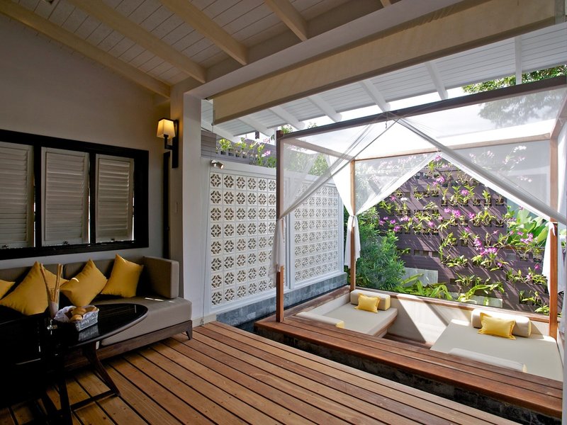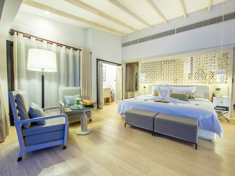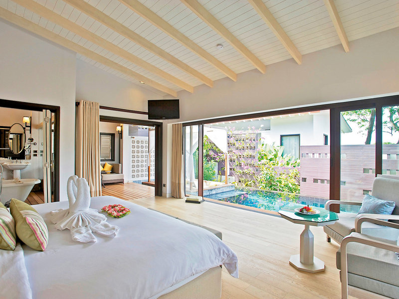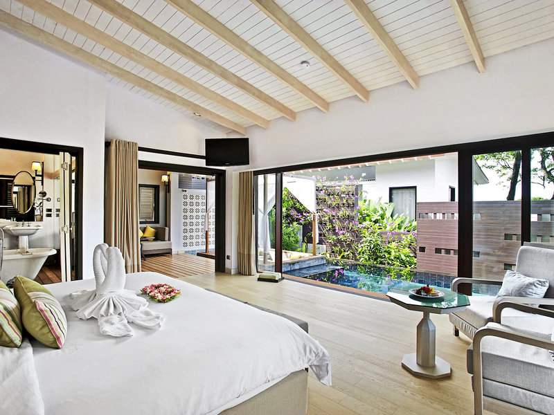 - Pool Villa (VIX1), Villa, Mindestalter im Zimmer: 12 Jahre, ca. 130 m², Gesamtanzahl der Räume in diesem Zimmertyp: 1, Aufteilung wie folgt: kombiniertes Wohn-/Schlafzimmer, Wohnzimmer, Klimaanlage: ohne Gebühr, individuell regelbar, Fußboden: Parkett, Safe: ohne Gebühr, Deckenventilator, Sofa, Schreibtisch, Bügeleisen, Bügelbrett, Kühlschrank, Kaffee-/Teezubereiter, Minibar: gegen Gebühr, Softdrinks: gegen Gebühr, Wasser: ohne Gebühr, alkoholische Getränke: gegen Gebühr, Telefon, Internet: WLAN/WiFi: ohne Gebühr, Fernseher: deutsches Programm, Kabel-TV, DVD-Player, Roomservice: gegen Gebühr, separate Dusche, Badewanne, WC, Bademantel: ohne Gebühr, Slipper: ohne Gebühr, Föhn, Balkon oder Terrasse: mit Liegestühlen, mit Sitzgelegenheit, mit Private Pool