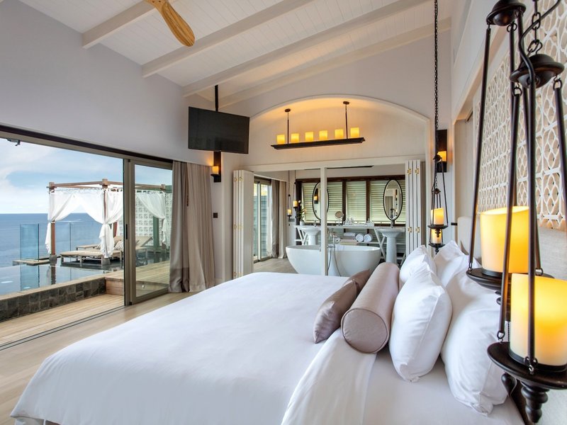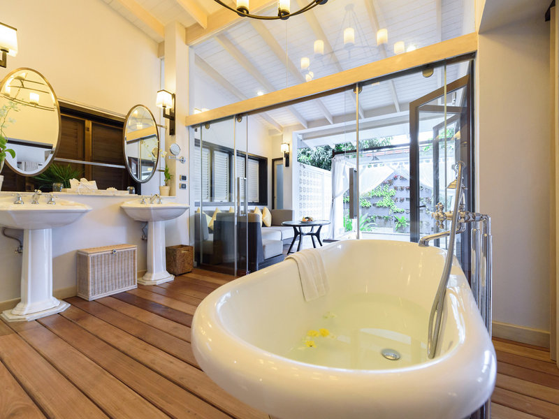 - Seaview Pool Villa in Love (VIM3), Doppelzimmer, Mindestalter im Zimmer: 13 Jahre, Meerseite, Meerblick, ca. 130 m², Gesamtanzahl der Räume in diesem Zimmertyp: 1, Aufteilung wie folgt: kombiniertes Wohn-/Schlafzimmer, Wohnzimmer, Klimaanlage: individuell regelbar, Fußboden: Parkett, Safe, Deckenventilator, Sofa, Schreibtisch, Bügeleisen, Bügelbrett, Kühlschrank: ohne Gebühr, Kaffee-/Teezubereiter, Minibar: gegen Gebühr, Softdrinks: gegen Gebühr, Wasser: ohne Gebühr, alkoholische Getränke: gegen Gebühr, Snacks: gegen Gebühr, Telefon, Internet: WLAN/WiFi: ohne Gebühr, Fernseher: Flatscreen, deutsches Programm, Sat-TV, DVD-Player, Roomservice: täglich 24 Stunden, gegen Gebühr, Reinigungsservice: täglich, separate Dusche, Regendusche, Badewanne, WC, Bademantel, Slipper, Föhn, Kosmetikspiegel, Balkon oder Terrasse: mit Liegestühlen, mit Sitzgelegenheit, mit Private Pool