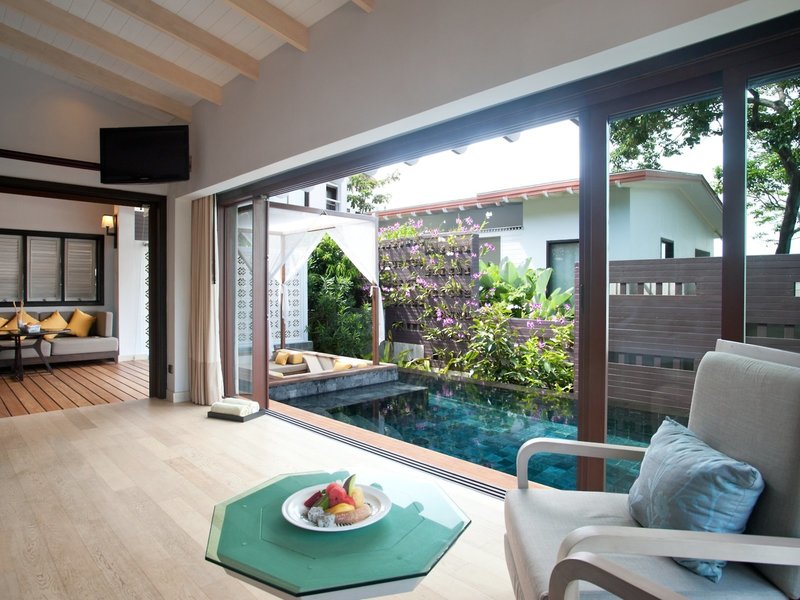 - Two-bedroom Pool Villa (VIX2), Villa, Mindestalter im Zimmer: 12 Jahre, ca. 260 m², Gesamtanzahl der Räume in diesem Zimmertyp: 3, Aufteilung wie folgt: Wohnzimmer, 2 Schlafzimmer, Klimaanlage: ohne Gebühr, individuell regelbar, Fußboden: Parkett, Safe: ohne Gebühr, Deckenventilator, Sofa, Schreibtisch, Bügeleisen, Bügelbrett, Minibar: gegen Gebühr, Softdrinks: gegen Gebühr, Wasser: ohne Gebühr, alkoholische Getränke: gegen Gebühr, Telefon, Internet: WLAN/WiFi: ohne Gebühr, Fernseher: Flatscreen, deutsches Programm, Kabel-TV, DVD-Player, separate Dusche, Badewanne, Bademantel: ohne Gebühr, Slipper: ohne Gebühr, 2 Bäder, Föhn, Balkon oder Terrasse: mit Liegestühlen, mit Sitzgelegenheit, mit Private Pool