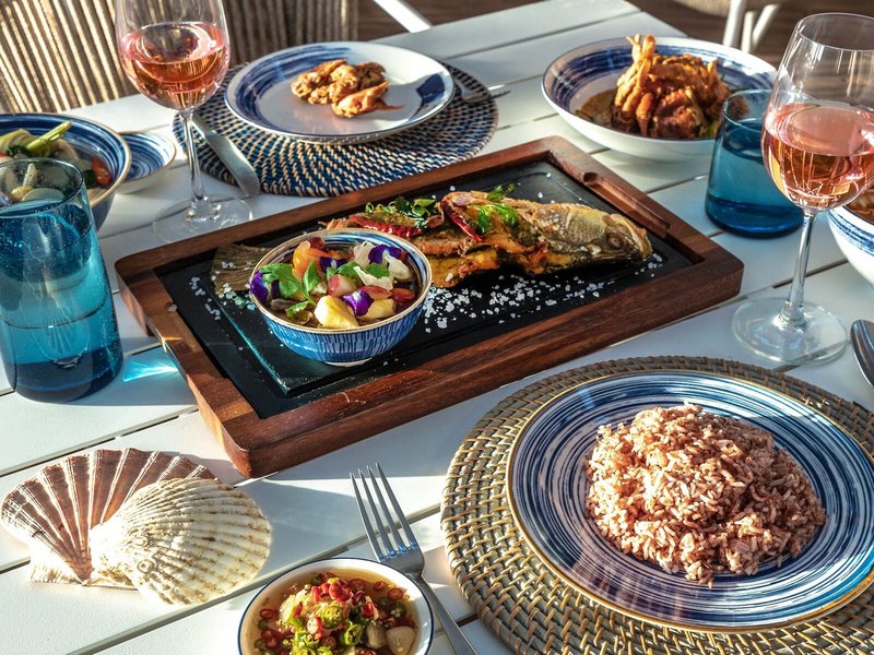 - Catch Beach Club étterem (6 perc ingyenes transzferrel): Konyha: ázsiai, nemzetközi, olasz, japán, mediterrán, keleti, thai, hal/tenger gyümölcsei, grillezett ételek, sushi, vegetáriánus ételek, büfé, à la carte, menüválasztás, érdeklődés & előfoglalás nem szükséges, térítés ellenében, január-december, naponta 11:00-12:00, a strandon, dohányzóhely, etetőszék