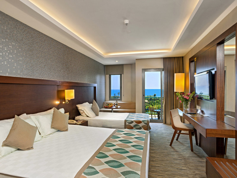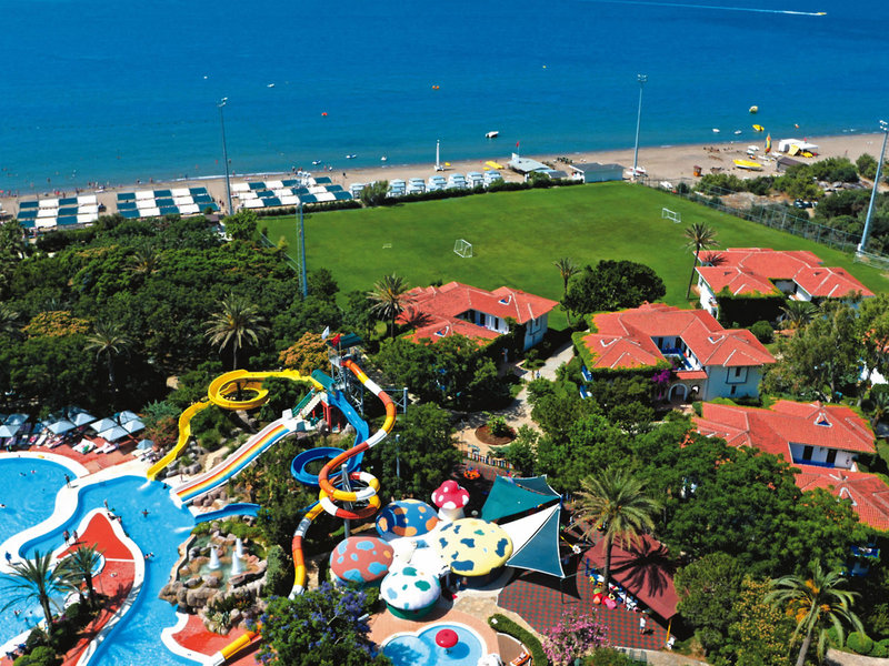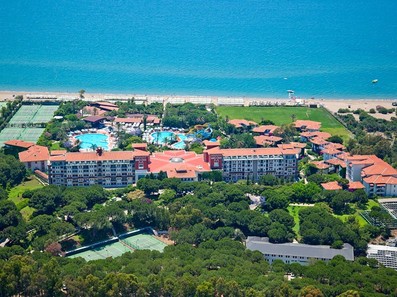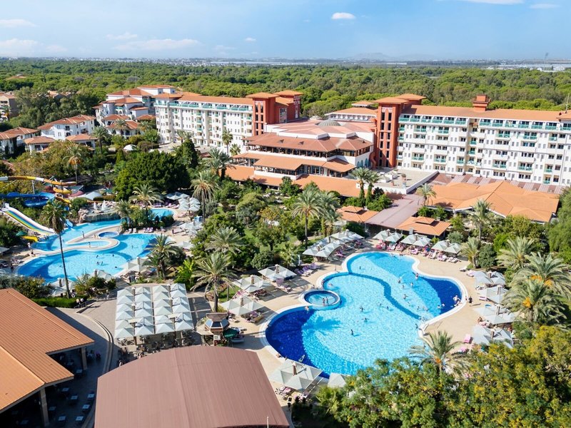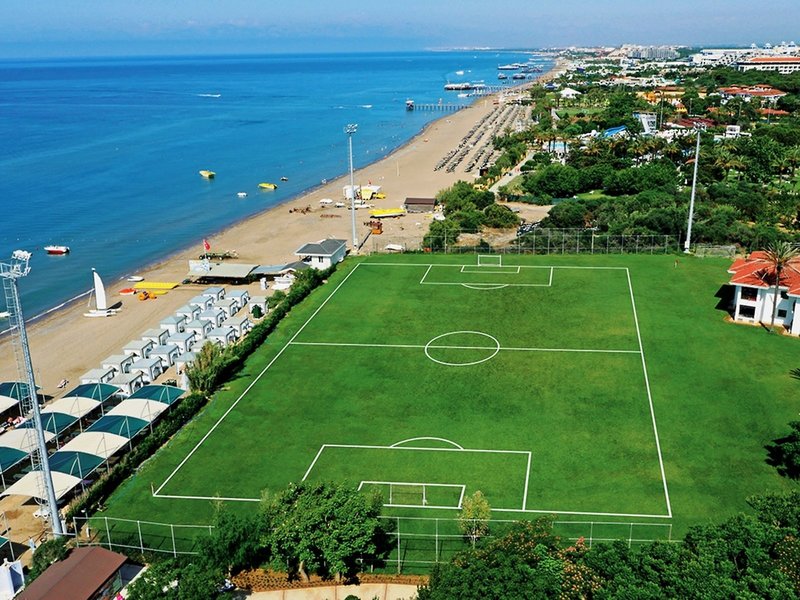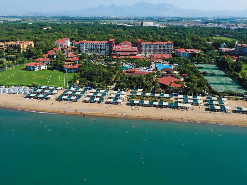 Lage & Umgebung Das Hotel besticht durch seine erstklassige Lage direkt am naturbelassenen Strand, der mit Sand und Kies flach ins Meer abfällt. Umgeben von Wald und inmitten der Natur bietet das Hotel eine ruhige Atmosphäre, obwohl es an der lebhaften Strandpromenade liegt. Das Zentrum von Belek ist ca. 800 m entfernt, während Serik in ca. 9 km erreichbar ist. Die Shoppingmall „The Land of Legends“ sowie das Aspendos Hospital sind beide in ca. 5 km Entfernung. Zum Golfplatz sind es nur ca. 200 m. Der Flughafen Antalya liegt ca. 30 km entfernt.