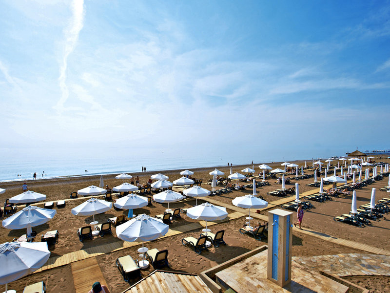 Lage & Umgebung Das Crystal Tat Beach liegt in der Region Belek an der türkischen Riviera, eingebettet zwischen dem leuchtenden Blau des Mittelmeers und üppigem Grün. Der feine Sandstrand ist direkt vom Hotel aus erreichbar, während du das Stadtzentrum und den Flughafen in kurzer Entfernung findest. Die Umgebung begeistert mit nahegelegenen Golfplätzen und Naturgebieten von besonderer Artenvielfalt. Die ruhige Lage macht das Hotel zum perfekten Rückzugsort für Familien, Paare und alle, die Erholung mit vielfältigen Freizeitmöglichkeiten verbinden möchten.