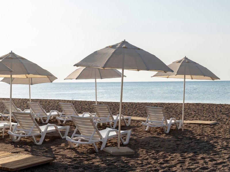 - Strand „Beach“: Sand, naturbelassen, privat, hoteleigen, Shuttletransfer: saisonabhängig, ohne Gebühr, Liegen, Liegestühle