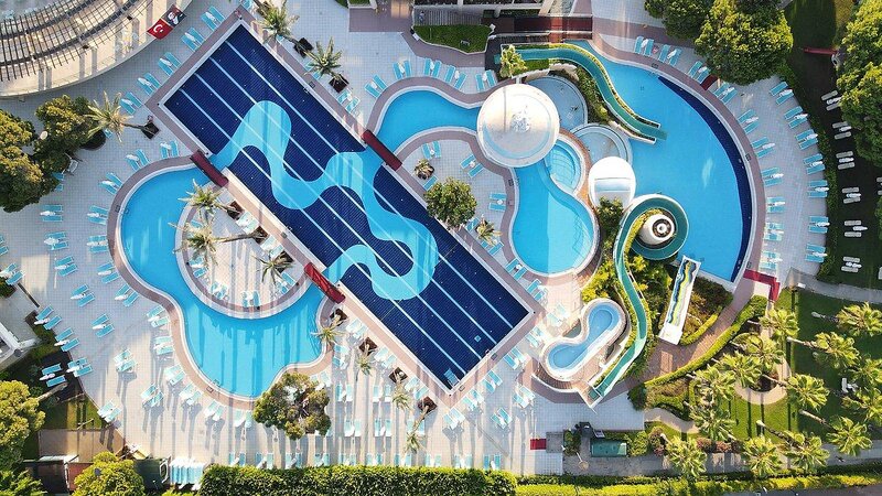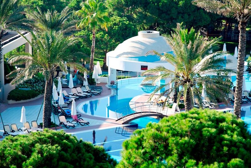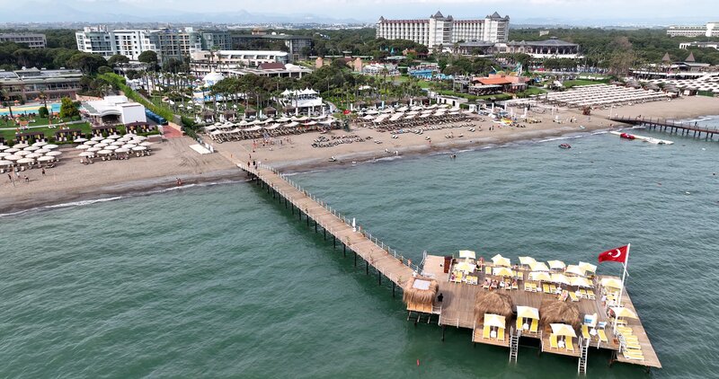 Közvetlenül a szálloda saját homokos/kavicsos strandján található. Belek városközpontja kb. 4 km-re található. Repülőtér, kb. 35 km. Átadási idő. körülbelül 40 perc.