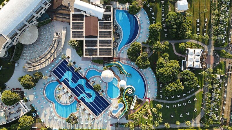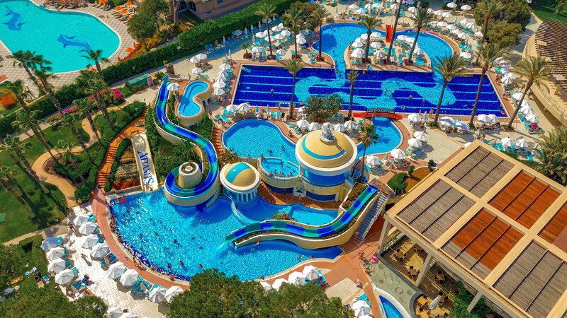 Az exkluzív szállodakomplexum 373 szobával rendelkezik 3 emeleten és 5 melléképületben. A szolgáltatások közé tartozik a hall recepcióval, lift, internetkávézó (térítés ellenében), Wi-Fi, fodrászat, TV sarok, főétterem, 5 à la carte étterem, 4 bár, üzletek, ékszerüzletek, diszkó, amfiteátrum és wellness központ. . A komplexum 4 úszómedencével, napozóterasszal és medence melletti snackbárral várja vendégeit. A nyugágyak, napernyők és strandtörölközők ingyenesek a medencénél és a strandon.