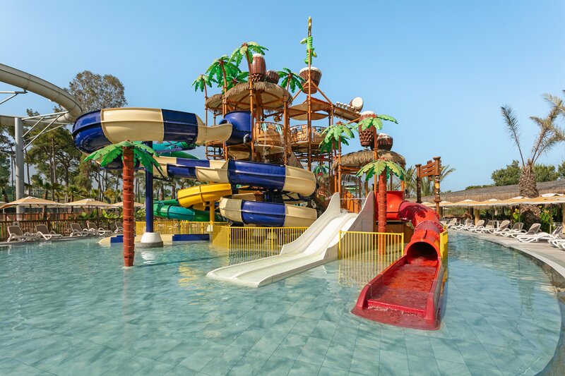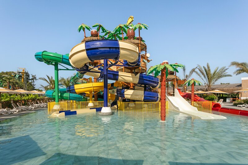 Das Hotel besteht aus insgesamt 393 Zimmer und verfügt unter anderem über eine 24-Stunden-Rezeption, WLAN, mehrere Bars und Restaurants sowie 5 Pools mit Liegen und Sonnenschirmen je nach Verfügbarkeit.