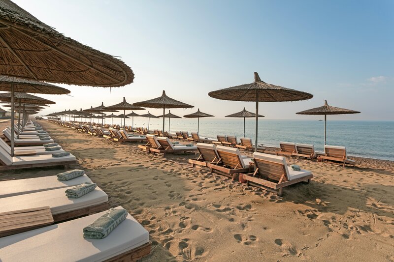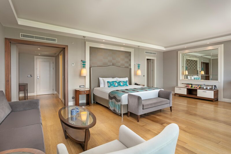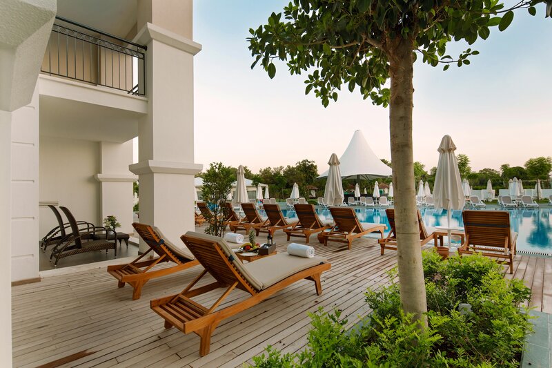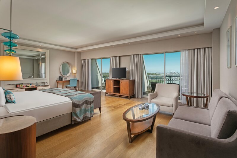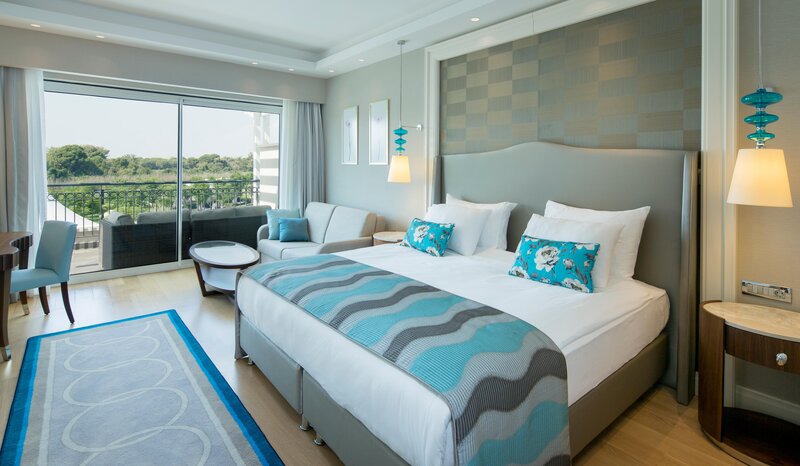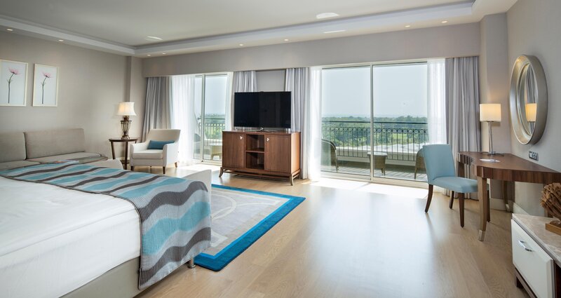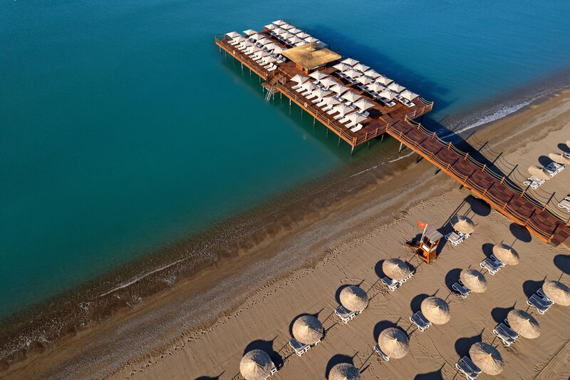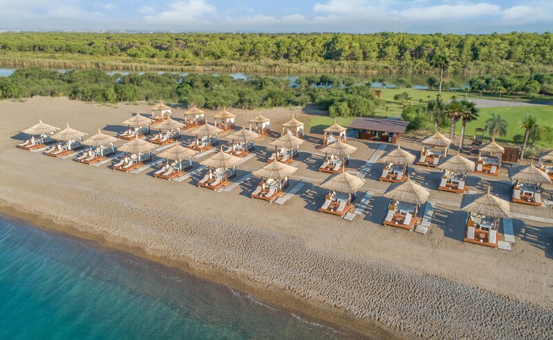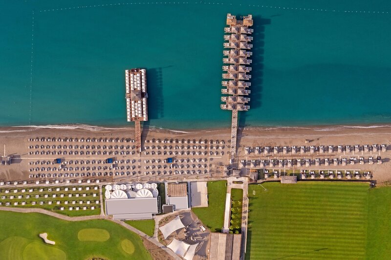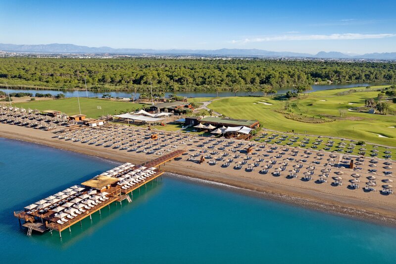 Das Hotel Titanic Deluxe Golf Belek befindet sich am Ortsrand der Stadt Belek. Nutzen Sie den Bootsshuttle um zum hoteleigenen Strandabschnitt zu gelangen. Das ca. 7 km entfernte Stadtzentrum bietet zahlreichen Einkaufsmöglichkeiten, den Garten der Toleranz und ein Antik-Freilichttheater. Der Flughafen ist etwa 30 Kilometer entfernt.