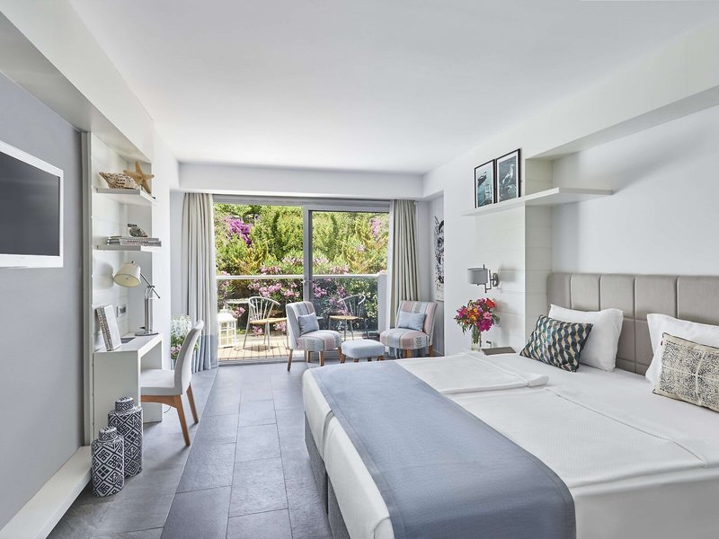 Szállás: A szobákban légkondicionáló gondoskodik a kellemes beltéri klímáról. A vendégek az erkélyről vagy a teraszról élvezhetik a kertre nyíló kilátást. A szobákban egy franciaágy és egy kanapéágy található. Pótágyak igényelhetők. Széf, minibár és íróasztal is rendelkezésre áll. A tea-/kávéfőző is alapfelszereltség. Vasalókészlet és nadrágvasaló is rendelkezésre áll. A telefon, a műholdas/kábeltévés TV és az ingyenes wifi a legjobb nyaraláskomfortot biztosítja. A szobákban papucs is található. A fürdőszoba zuhanyzóval, hajszárítóval és fürdőköpennyel felszerelt. Különlegességként a fürdőszobákban kozmetikai termékek és törölközőválaszték áll rendelkezésre. Akadálymentesített fürdőszobák is foglalhatók. A szálloda családi és nemdohányzó szobákat kínál.