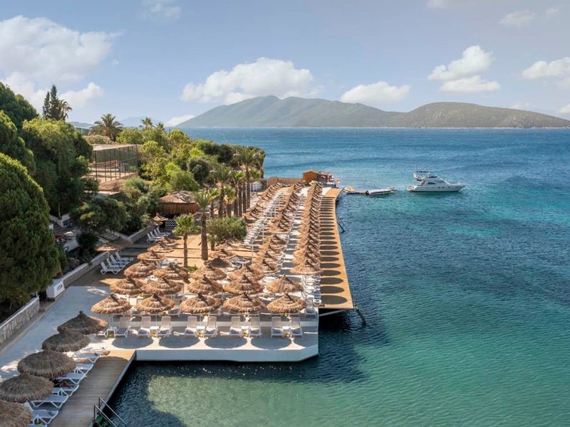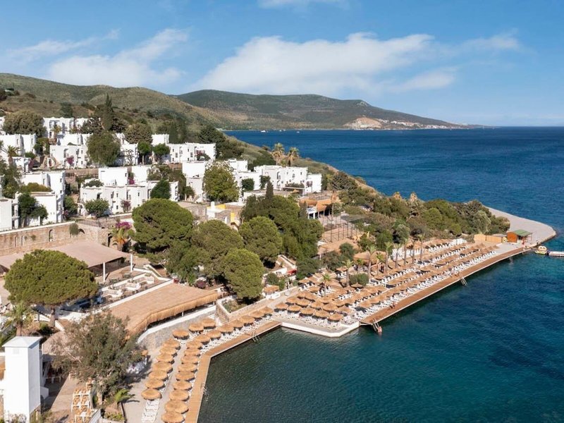 Elhelyezkedés és környezet A stílusos szállodakomplexum a gyönyörű Bodrum-félszigeten található, ahol izgalmas történelmi látnivalók várják a felfedezésre váró látnivalókat. Körülbelül 2,5 km-re van Bodrum városától, ahol fehér házak és a hatalmas keresztes kastély található, amely a víz alatti régészeti múzeumnak ad otthont.