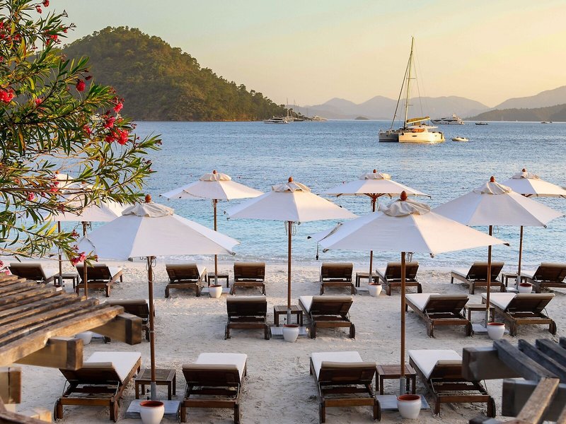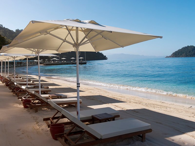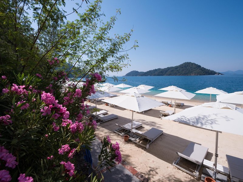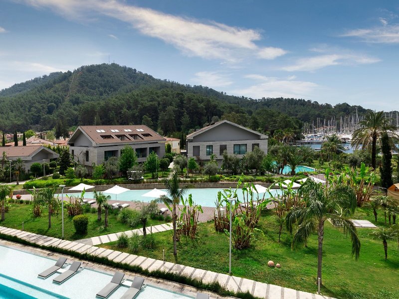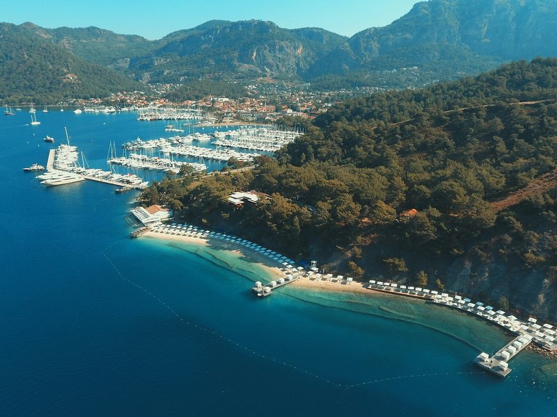 Lage & Umgebung Das Resort, ideal für Strandurlauber und Familien, liegt in Göcek, ca. 800 m vom hoteleigenen Sandstrand entfernt, in ruhiger Lage.