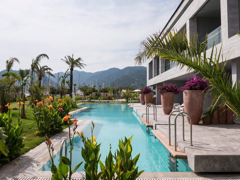 Elhelyezkedés és környezet A strandolók és családok számára ideális üdülőhely Göcekben található, mintegy 800 méterre a szálloda saját homokos strandjától, csendes helyen.