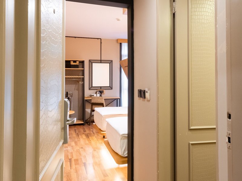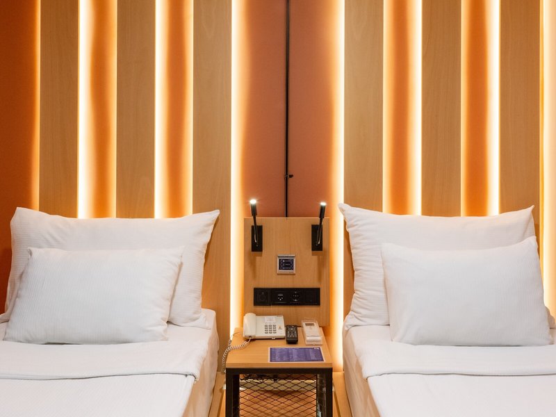 - Standard Twin Beds room (DZX3), Doppelzimmer, Nichtraucherzimmer, im Hauptgebäude, Innenhofblick, Stadtblick, ca. 15 - 18 m², letzte Komplettrenovierung 2021, letzte Teilrenovierung 2025, Gesamtanzahl der Räume in diesem Zimmertyp: 1, Aufteilung wie folgt: 1 Schlafzimmer, 2 Einzelbetten (90x200cm), Babybett: ohne Gebühr, Anfrage notwendig, Klimaanlage: ohne Gebühr, individuell regelbar, kalt, warm, Fußboden: Laminat, Safe: gegen Gebühr, Schreibtisch, Kühlschrank: ohne Gebühr, Telefon, Internet: WLAN/WiFi: ohne Gebühr, Fernseher: im Schlafzimmer, deutsches Programm, Sat-TV, Roomservice: täglich 07:00 Uhr - 22:30 Uhr, gegen Gebühr, Barzahlung, Reinigungsservice: täglich 08:00 Uhr - 15:00 Uhr, ohne Gebühr, Dusche, WC, Slipper: ohne Gebühr, Föhn, Kosmetikspiegel