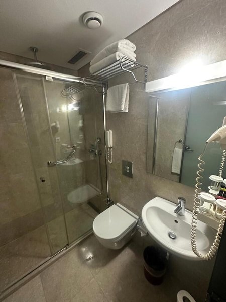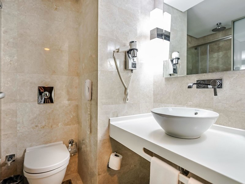 Das bietet Ihre Unterkunft: Das Hotel bietet 93 Nichtraucherzimmer und 3 Einzelzimmer auf 5 Etagen, die mit 2 Aufzügen erreichbar sind. Die Rezeption ist rund um die Uhr besetzt. Zu den Einrichtungen des Hauses gehören eine Garderobe, eine Gepäckaufbewahrung, ein Safe und eine Wechselstube. In der Unterbringung steht WLAN zur Verfügung. Hilfestellung bei der Buchung von Ausflügen wird am Tourdesk geboten. Das Hotel verfügt über eine Reihe von behindertengerechten Annehmlichkeiten. Rollstuhlgerechte Einrichtungen sind vorhanden. Es ist eine Reihe von Geschäften vorhanden, die zum Schlendern und Stöbern einladen. Zu den weiteren Einrichtungen des Hauses zählen ein TV-Raum und eine Bibliothek. Bei einer Anreise mit dem Auto können die Gäste dieses in einer Garage (gegen Gebühr) oder auf dem Parkplatz (gegen Gebühr) parken. Unter den weiteren Leistungen finden sich ein Babysitterservice, eine Autovermietung, medizinische Betreuung, ein Transferservice, ein kostenpflichtiger Zimmerservice, ein Weckdienst, ein Wäscheservice und ein eigener Shuttlebus. Aktive Reisende, die die Umgebung per Rad entdecken möchten, werden den Fahrradverleih zu schätzen wissen. Kostenfrei steht Gästen die Tageszeitung zur Verfügung. Im Geschäftsbereich (Business-Center) sind Faxgerät und Projektor vorhanden.