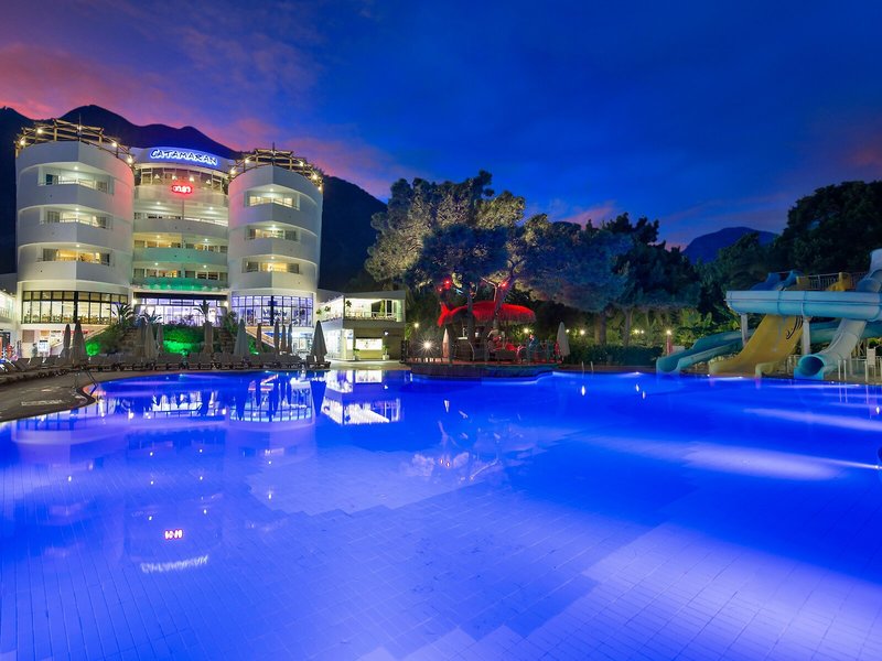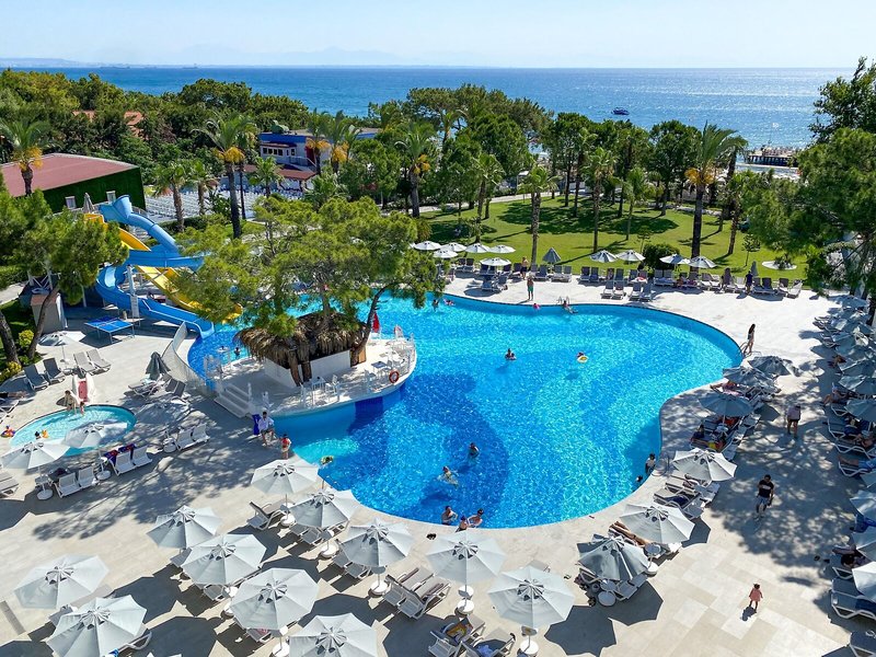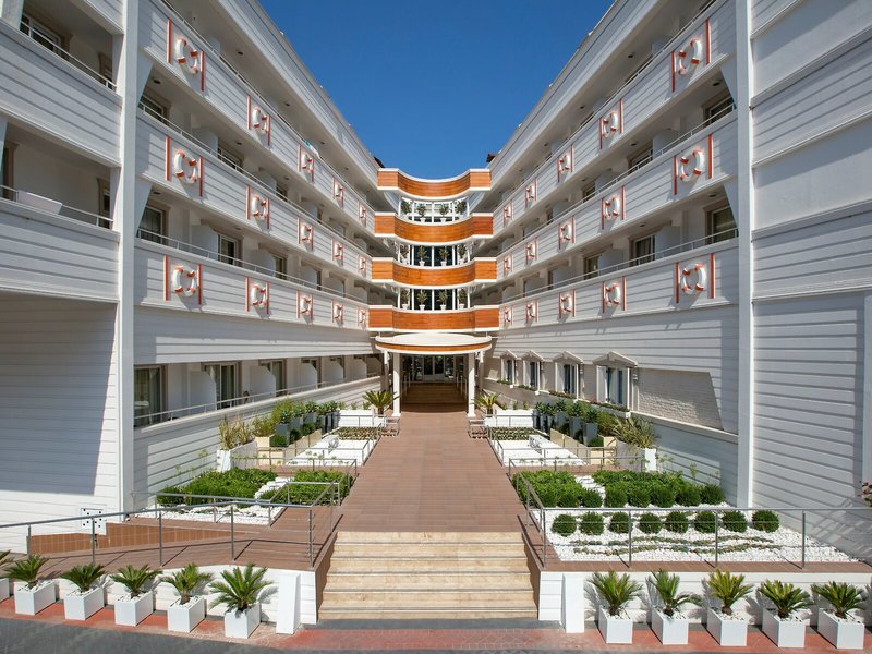 Lage & Umgebung Das Hotel liegt im Touristenzentrum von Kemer. Der Strand sowie Einkaufsmöglichkeiten befinden sich direkt am Hotel. Zum Flughafen von Antalya sind es 45 km.