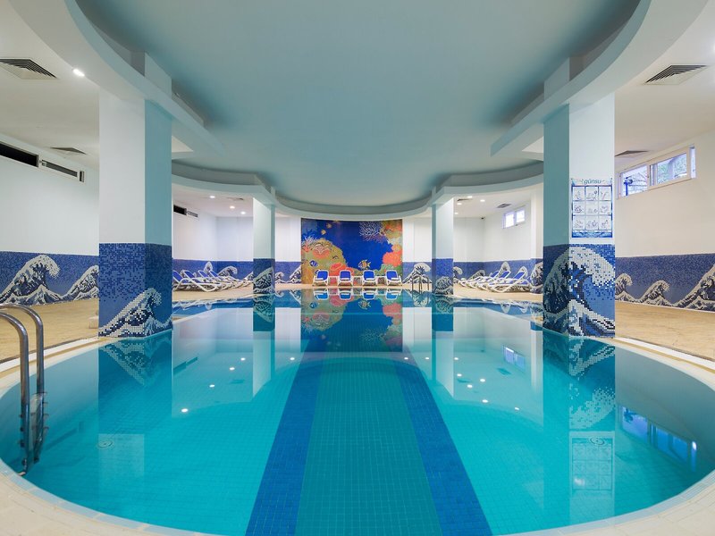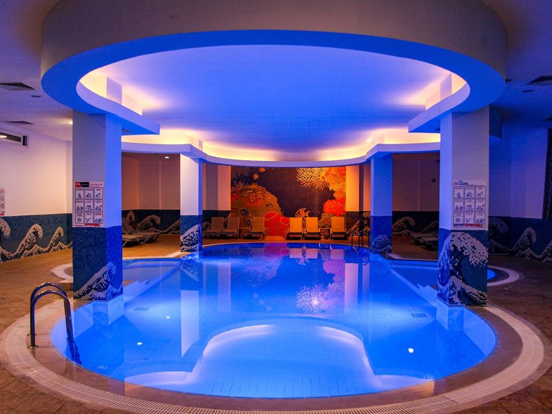Sport & Fitness: Der Poolbereich bietet zum Teil beheizte Salz- und Süßwasserbecken und einen Kinderplanschpool. Angenehmen Ausgleich zwischen Sport und Erholung finden die Gäste sowohl im Innen- als auch im Außenpool. Pure Tiefenentspannung im Whirlpool, Vergnügen auf der Wasserrutsche und erfrischende Getränke an der Poolbar – die Gäste werden erleben, wie abwechslungsreich der Wasserspaß sein kann. Auf der Sonnenterrasse mit Liegestühlen und Schirmen lässt sich der Urlaub genießen. Das Hotel bietet ein umfangreiches Outdoor-Sportprogramm mit Boccia, Beachvolleyball, Basketball und Minigolf. Eine Vielzahl an Sportarten steht zur Verfügung, darunter Wassersportarten wie Tretbootfahren und Aqua-Fitness und gegen Gebühr Wasserskifahren, Windsurfen, Jetskifahren, Motorbootfahren, Bananenbootfahren, Kanufahren, Segeln, Katamaranfahren, Tauchen und Parasailing. Um die Pisten zu erreichen, stehen Skilifte zur Verfügung. Tischtennis, Darts und Aerobic sind Teil des Sport- und Freizeitangebots des Apartmenthotels. In der Unterbringung werden verschiedene Wellnessangebote wie Spa, Sauna, Dampfbad, Hammam, Schönheitssalon und Massage-Anwendungen offeriert. Kleine und große Gäste haben die Möglichkeit, mit Unterhaltungsprogrammen ihren Aufenthalt abwechslungsreicher zu gestalten.