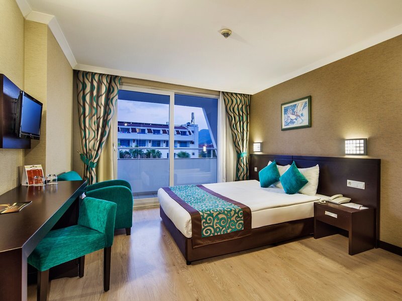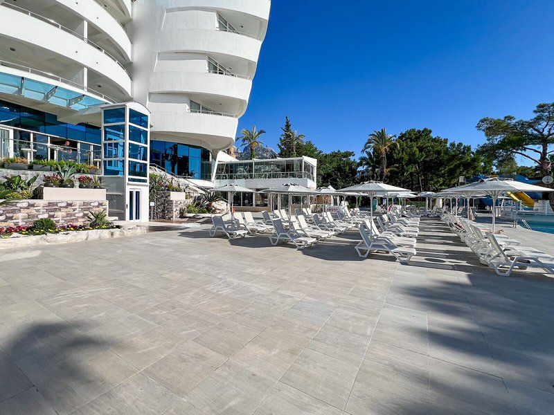 Elhelyezkedés és környezet: A szálloda Kemer turisztikai központjában található. A strand és az üzletek közvetlenül a szálloda mellett találhatók. Az Antalya repülőtér 45 km-re található.