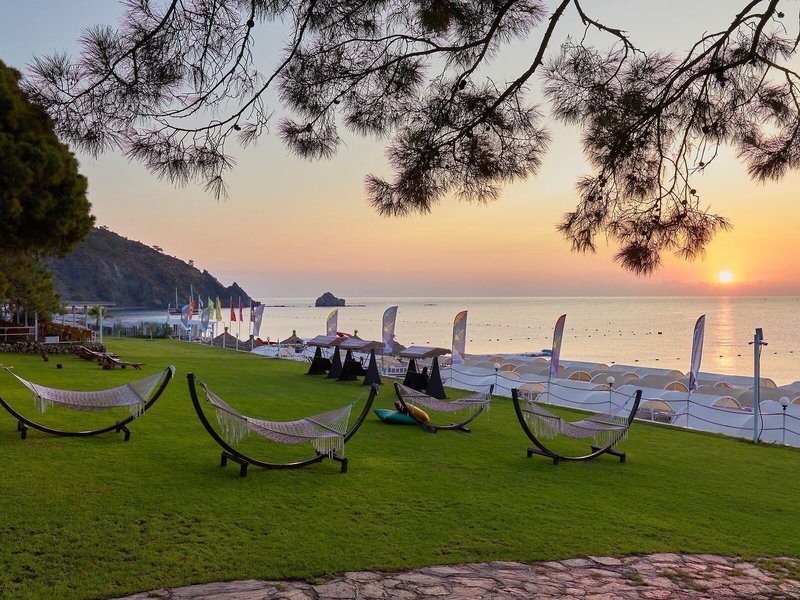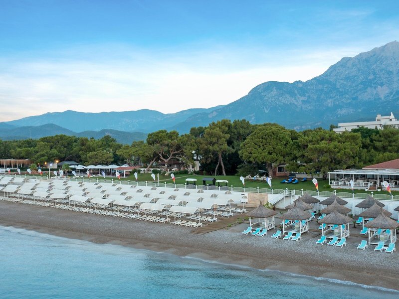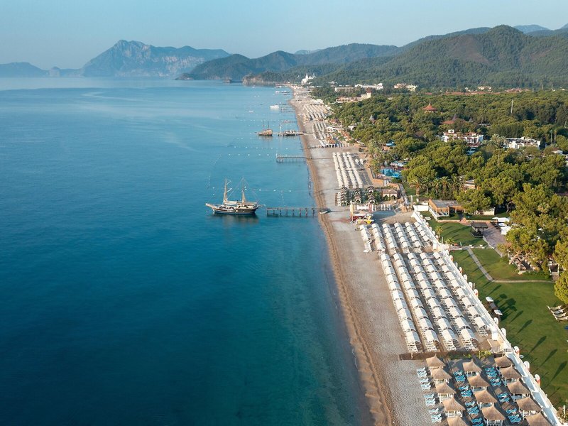 Fekvése és környéke A luxusszálloda Tekirovában található, ahol számos természetvédelem alatt álló falu található. Csak körülbelül 1 km-re található a városközponttól, ahol különféle üzletek, éttermek és bárok várják a vendégeket. A következő buszmegálló közvetlenül a szálloda épülete előtt található. Antalya repülőtere körülbelül 75 km-re található.