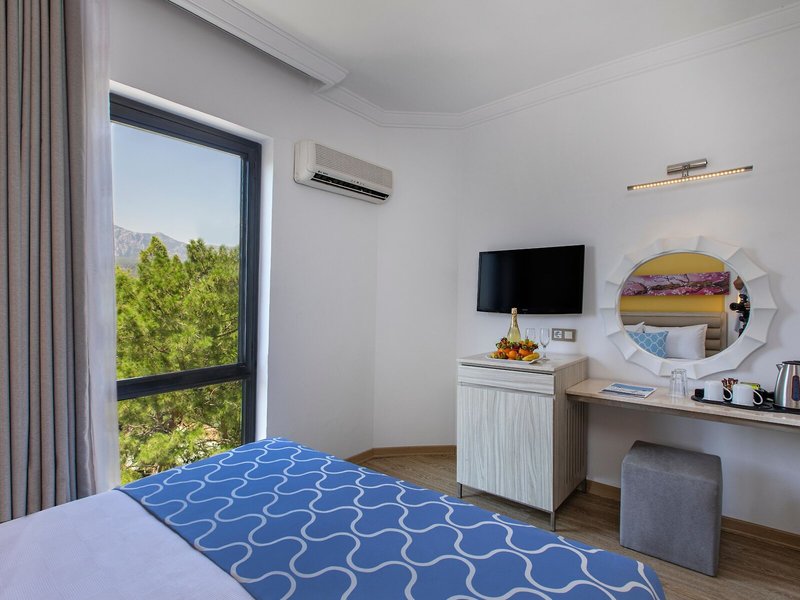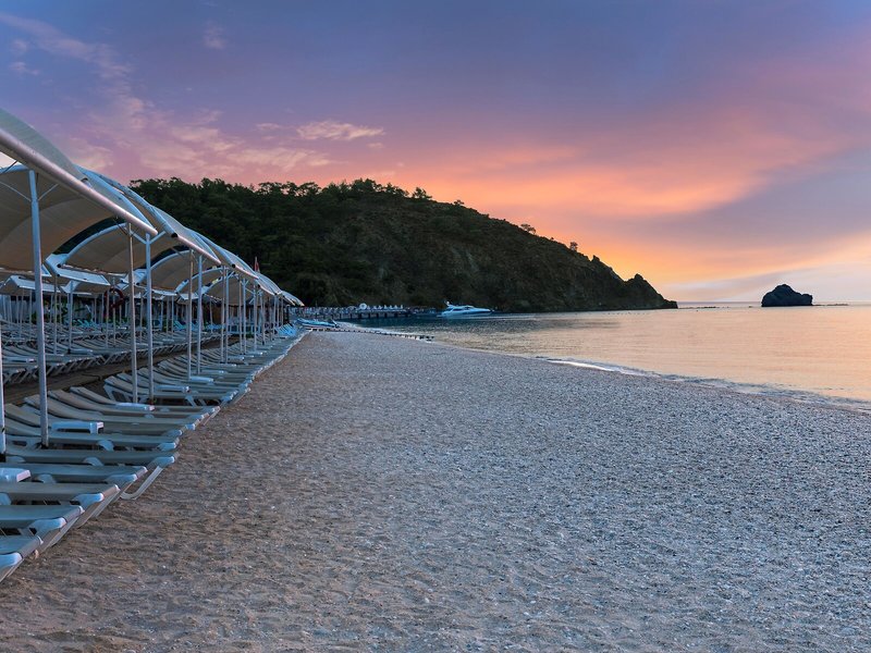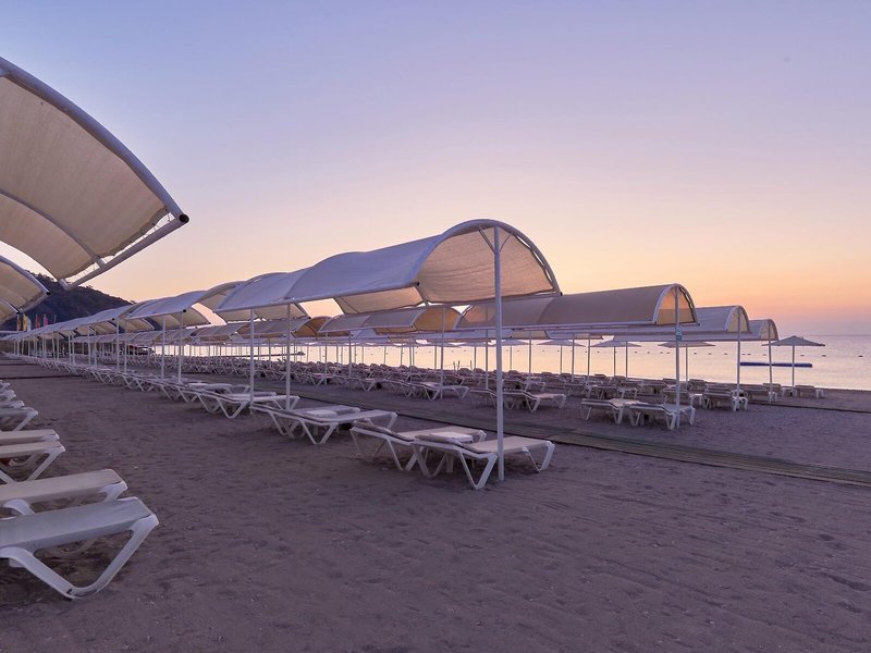 Lage & Umgebung Das Hotel der Luxusklasse befindet sich in Tekirova, wo sich sehr viele Naturgeschützte Dörfer befinden. Es ist nur ca. 1 km vom Stadtzentrum mit diversen Einkaufsmöglichkeiten, Restaurants und Bars entfernt. Die nächste Bushaltestelle liegt direkt vor dem Hotelgebäude. Der Flughafen Antalya ist rund 75 km entfernt gelegen.