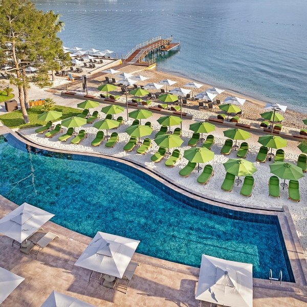 - Strand „Strand“: Sand, Kies, steil abfallend, Strandlänge: ca. 555 m, Steg, hoteleigen, Liegen: ohne Gebühr, Sonnenschirme: ohne Gebühr