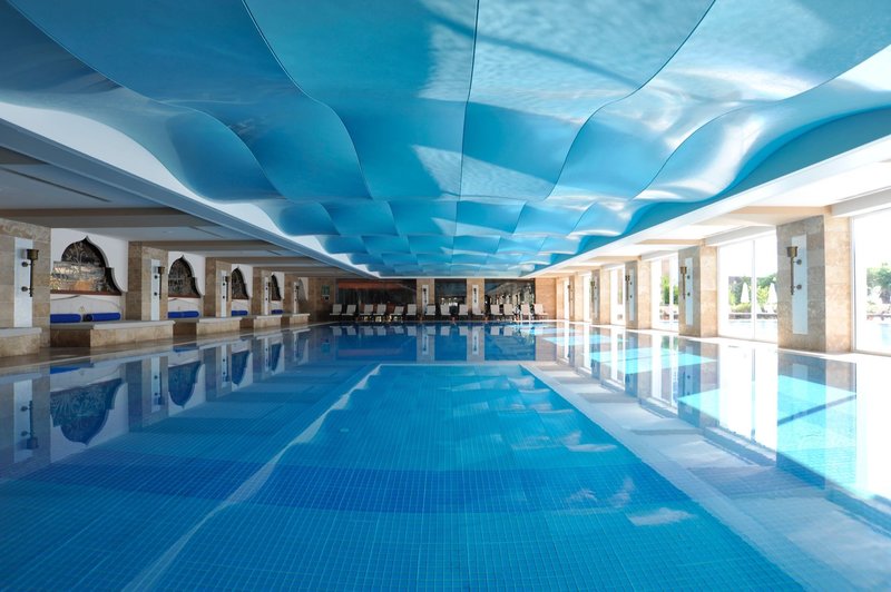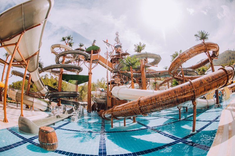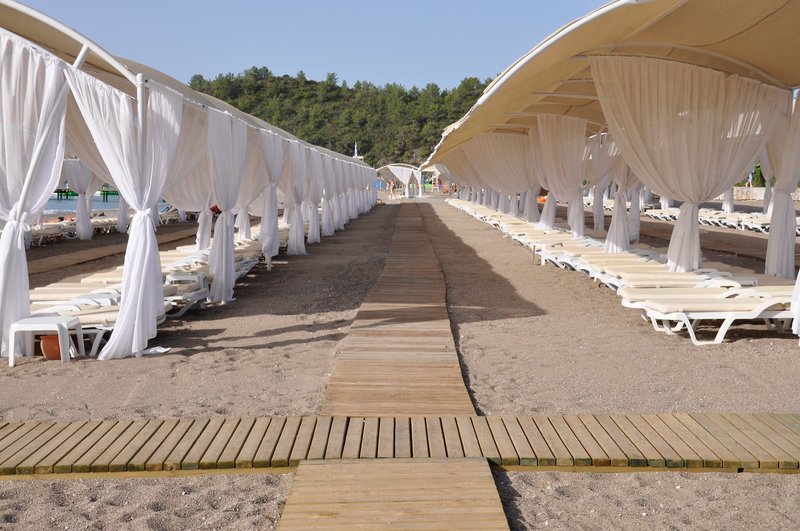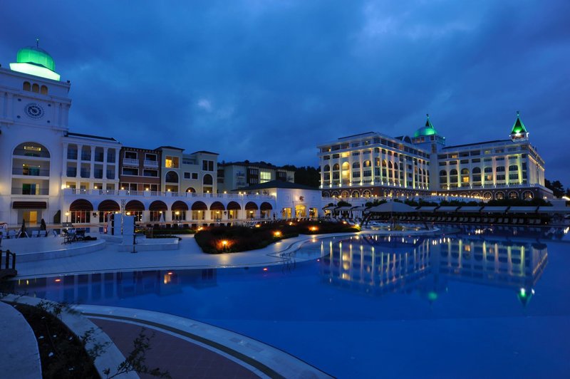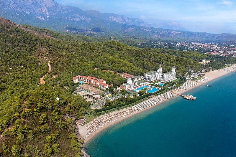 Felszereltség: Ez a tágas, dózse-palota stílusában tervezett luxushotel 705 szobával rendelkezik, összesen 200 000 m²-en, három hatszintes luxusépületben és számos háromszintes klubépületben a kertben. A vendégeket a lenyűgöző hallban fogadják recepcióval, hívogató ülősarokkal és egy lobbybárral, ahol pezsgővel, limonádéval, exkluzív török delight-tal és egy kosár almával várják őket. A kulináris élvezetek bőséges választékát kínálja a főétterem terasszal és gyermekbüfével, számos bár, büfé, házi készítésű hamburger állomás, 24 órás à la carte étterem és számos egyéb à la carte étterem (foglalás szükséges, a szabad helyek függvényében, felár ellenében). A gondtalan nyaralást további szolgáltatások közé tartozik egy éjszakai klub, Nespresso és Starbucks kávé a kávézóban, ingyenes Wi-Fi a közös helyiségekben és a szobákban, különféle üzletek (felár ellenében), egy fényárban úszó fedett medence pezsgőfürdővel, valamint egy vonzó wellness-részleg, amely széleskörű kezeléseket kínál. A hatalmas, érett fákkal tarkított kertben található egy szórakoztató részleg, egy úszómedence-komplexum tengervizes medencével (télen, az időjárástól függően fűtve), egy fő édesvizű medence külön gyermekmedencével, a két Roma Street Relax és az Istanbul Street Relax medence, mindegyikhez saját gyermekmedence, valamint a Mega Aquapark 15 vízicsúszdával. Az "Olümposz kalózai" 4000 négyzetméteren terül el, és magában foglal egy pancsolózónát, egy bébimedencét és a The Hook Aqua Bistro & Fastfood éttermet. Emellett napozóteraszok, napozóterületek és medence/snack bárok is találhatók. Itt, valamint a strandon, ahol móló és strandbár található, ingyenesen biztosítottak napozóágyak, napernyők és strandtörölközők.