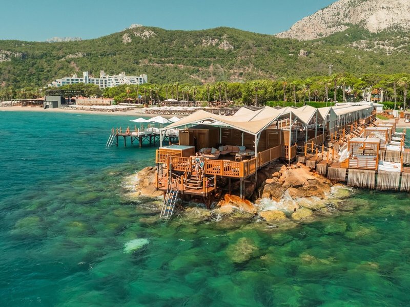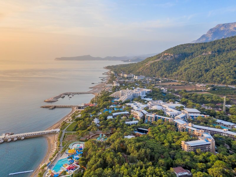 Lage & Umgebung Nur ca. 1 km vom noblen Stadtteil Beldibi entfernt gelegen, zwischen dem Mittelmeer und dem beeindruckenden Taurusgebirge. Nach Antalya sind es ca. 40 km, der Kiesstrand liegt direkt am Hotel.