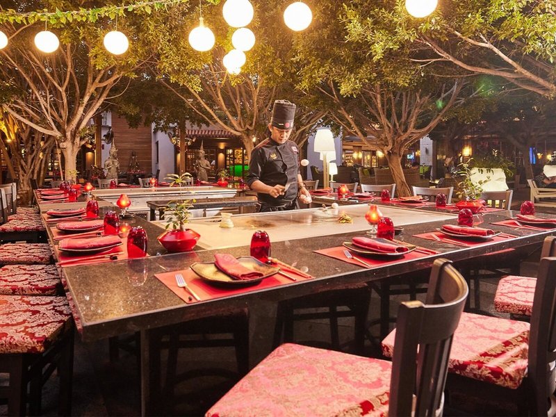 - Spezialitätenrestaurant „Teppenyaki A'la Carte Restaurant“: Küche: asiatisch, Teppanyaki, Grillgerichte, Babynahrung: Anfrage notwendig, glutenfreie Gerichte: Anfrage notwendig, Kindermenü: Anfrage notwendig, lactosefreie Gerichte: Anfrage notwendig, leichte Gerichte: Anfrage notwendig, à la carte, Menüwahl, Showcooking, Anfrage & Reservierung notwendig, gegen Gebühr, saisonabhängig; wetterabhängig, mehrmals pro Woche 19:00 Uhr - 23:00 Uhr, mit Terrasse, Raucherbereich, Kinderhochstuhl, angemessene Kleidung erwünscht
