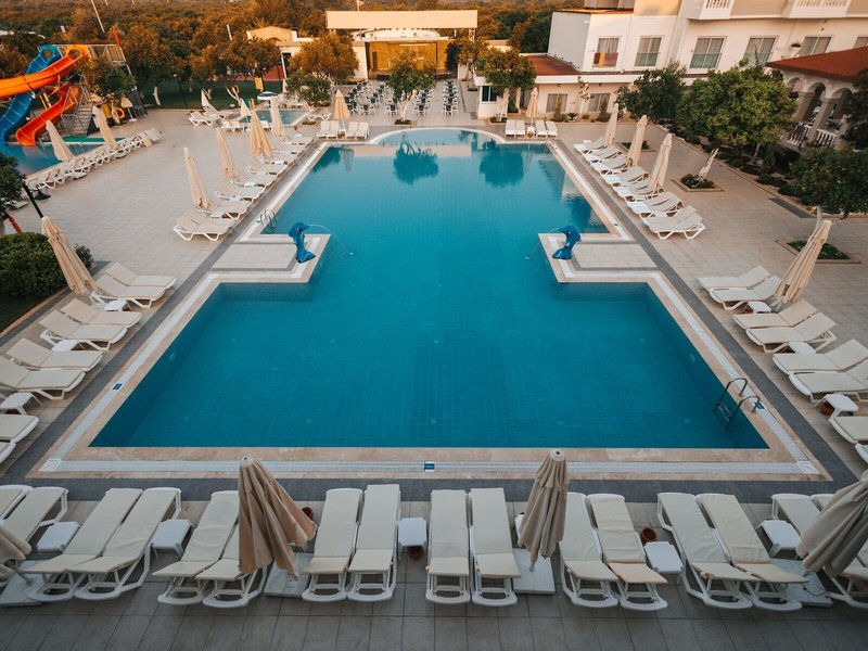 Lage & Umgebung Das Hotel befindet sich in einem der früheren Orangengärten und im Frühling können die Gäste den feinen Geruch der blühenden Bäume erleben. Im etwa 1000 m entfernten Zentrum Kemers stehen den Gästen Restaurants, Bars, Nachtlokale und Einkaufsmöglichkeiten zur Verfügung. Der öffentliche Strand ist rund 200 m entfernt und bis zum privaten Strand sind es ungefähr 1200 m. Kuğulu Park lässt sich nach ca. 1500 m erreichen. Nach ca. 30 Fahrtminuten erreicht man das touristische Zentrum Antalyas, die Skiregion von Saklıkent hingegen nach etwa 90 min. Die Entfernung zum Flughafen Antalya beträgt etwa 65 km.