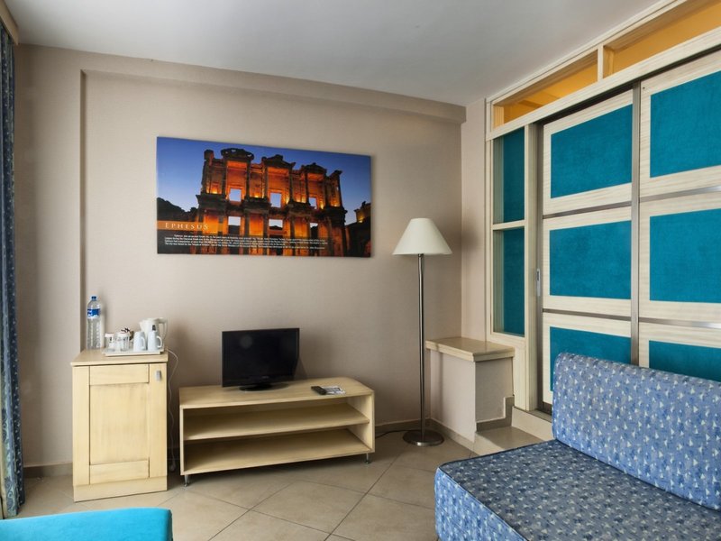 Lage & Umgebung Der Club liegt direkt am schönen, öffentlichen Kies-/Sandstrand "Long Beach". Kusadasi mit vielfältigen Einkaufs- und Unterhaltungsmöglichkeiten ist ca. 7 km entfernt. Taxi und Minibusverbindungen sind vorhanden. Transferzeit ab/bis Izmir ca. 90 Minuten, ab/bis Bodrum ca. 3 Stunden.