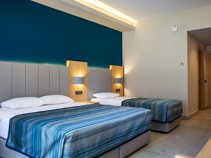 - Single with Child Superior Room SV (DSX1), Doppelzimmer, Neubau, Meerseite, Meerblick, Poolblick, ca. 34 m², letzte Komplettrenovierung 2020, Wohnzimmer, 1 Schlafzimmer, 1 Einzelbett (100x200cm), 1 Doppelbett (180x200cm), Babybett, Klimaanlage: individuell regelbar, warm, Fußboden: Fliesenboden, Safe, Wasserkocher, Minibar: Wasser, Telefon, Internet: WLAN/WiFi: ohne Gebühr, Fernseher: Flatscreen, im Schlafzimmer, Sat-TV, Reinigungsservice, Dusche, WC, Föhn, Balkon: mit Sitzgelegenheit, Balkon oder Terrasse: mit Sitzgelegenheit
