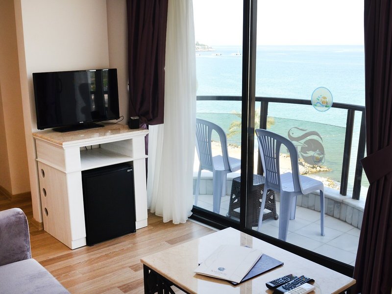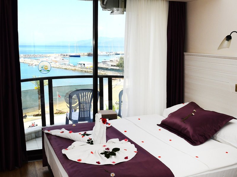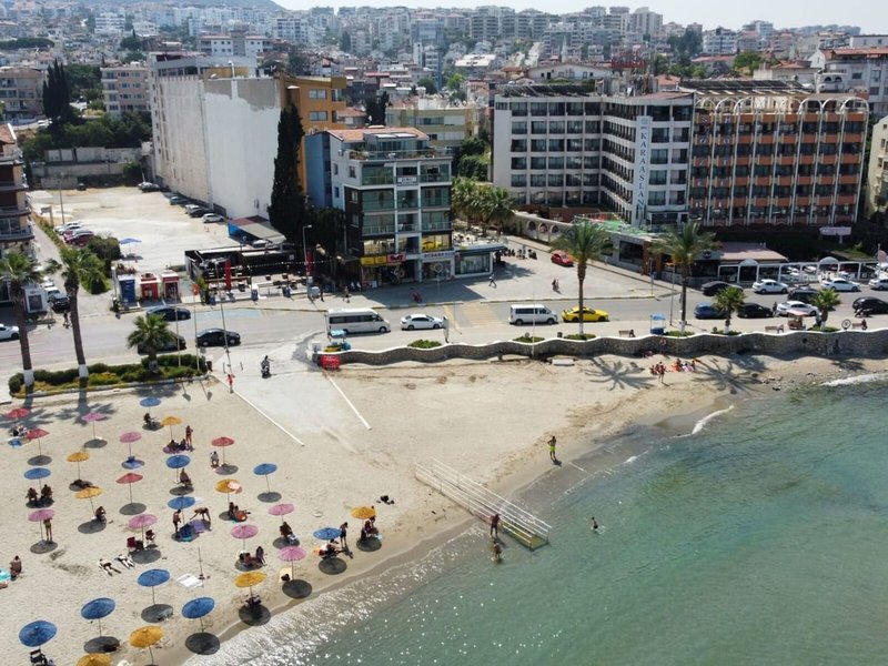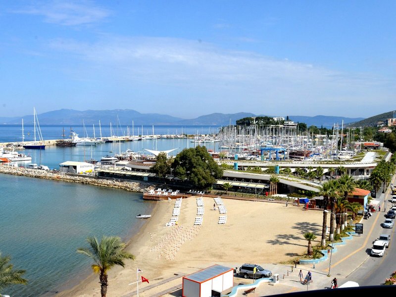 Lage & Umgebung Das Hotel ist direkt am Strand gelegen und etwa 4 km vom Stadtzentrum mit umfangreichen Einkaufsmöglichkeiten, Restaurants, Bars und Diskotheken entfernt. Der Flughafen Izmir ist innerhalb einer Stunde mit den öffentlichen Verkehrsmitteln (90 km) erreichbar.