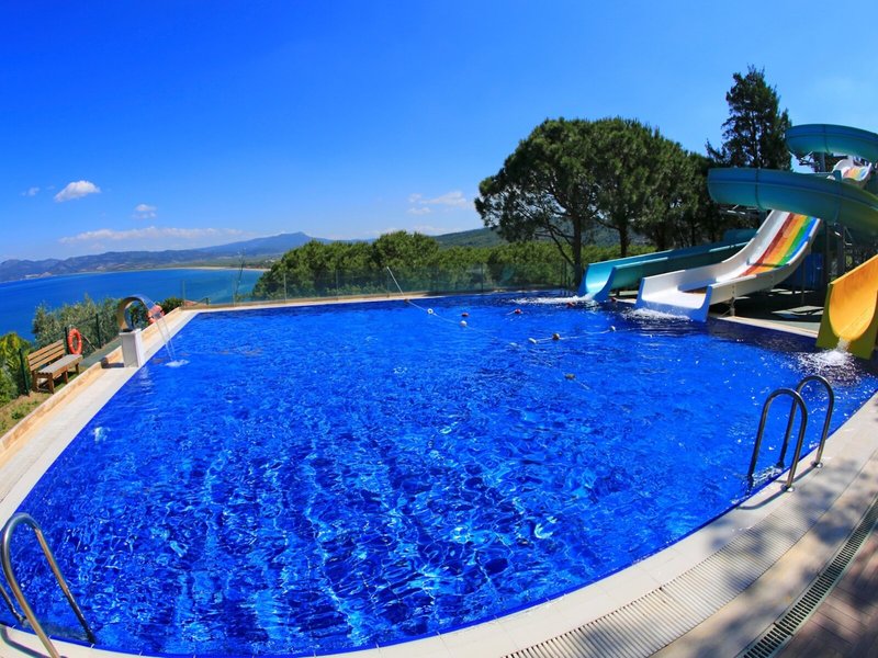 - Kinderpool „Kids Aquapark“: Mai - September, ohne Gebühr, Outdoor, Süßwasser, Anzahl Wasserrutschen: 2, integrierter Kinder/Babypool, Liegestühle, Sonnenschirme