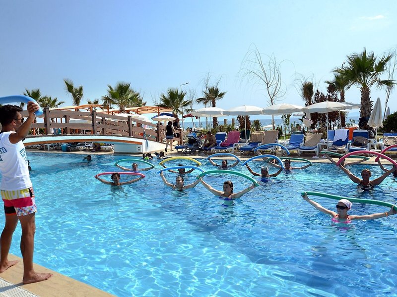 Sport és fitnesz: A szabadtéri és a beltéri medence pihenésre és úszásra csábít. A gyerekek pancsolómedencében pancsolhatnak. A vízicsúszda minden korosztály számára szórakozást nyújt, a medencebárban pedig frissítő italokat és harapnivalókat kínálnak. A nyugágyakkal és napernyőkkel ellátott napozóterasz tökéletes hely a kikapcsolódásra és a napozásra. A szállodában számos tevékenység közül választhatnak a vendégek, többek között tenisz, strandröplabda, röplabda, kosárlabda és íjászat. Vízi aerobik és aquafitnesz is rendelkezésre áll. A szálloda számos beltéri sportolási lehetőséget kínál, például edzőtermet, dartsot, tornát és aerobikot, valamint biliárdot (felár ellenében). A szálloda különféle wellness-szolgáltatásokat kínál, többek között gyógyfürdőt, szaunát, gőzfürdőt, hammamot, szépségszalont és masszázskezeléseket. Egyéb szabadidős tevékenységek közé tartozik a szórakoztató program, a gyerekklub és a minidiszkó.