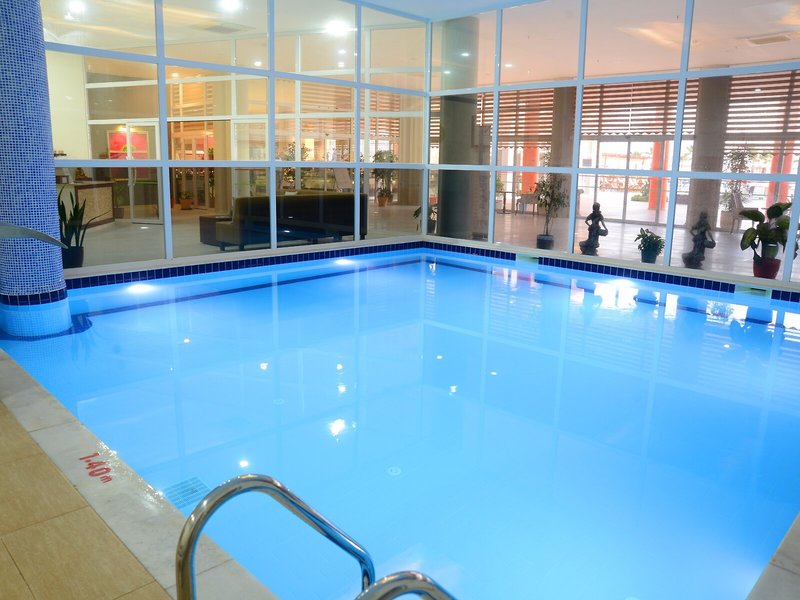 Sport & Fitness: Ein Außenpool und ein Hallenbad laden zum entspannten Badevergnügen ein. Kinder können sich in einem Planschbecken austoben. Eine Wasserrutsche sorgt für Badespaß bei Jung und Alt und eine Poolbar für erfrischende Getränke und die Stärkung zwischendurch. Auf der Sonnenterrasse mit Liegestühlen und Schirmen lässt sich der Urlaub genießen. Sportliche Abwechslung bieten viele verschiedene Aktivitäten, die in dem Hotel angeboten werden, wie z.B. Tennis, Beachvolleyball, Volleyball, Basketball und Bogenschießen. Mit Wasseraerobic und Aqua-Fitness spricht die Unterbringung auch Wassersportler an. Das Haus bietet eine Vielzahl an Möglichkeiten zur sportlichen Aktivität im Indoor-Bereich, wie etwa ein Fitnessstudio, Darts, Gymnastik und Aerobic sowie gebührenpflichtig Billard. Im Hotel werden verschiedene Wellnessangebote wie Spa, Sauna, Dampfbad, Hammam, Schönheitssalon und Massage-Anwendungen offeriert. Zu den weiteren Freizeitangeboten zählen ein Animationsprogramm, ein Miniclub und eine Minidisco.