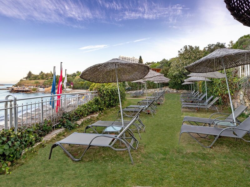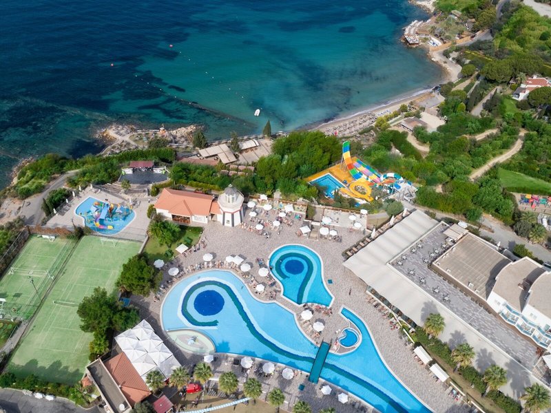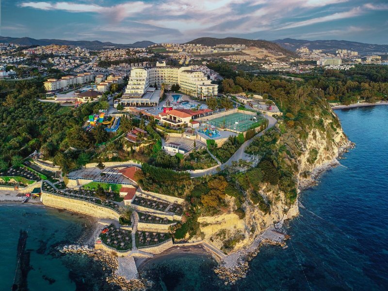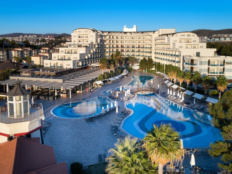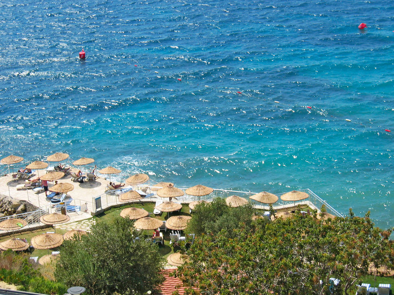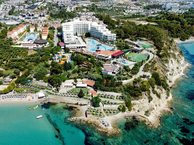 Lage & Umgebung Oberhalb des Meeres gelegen. Der 300 m lange, flach abfallende Sandstrand ist über Treppen zu erreichen. Zentrum ca. 5 km entfernt, Taxistand vor dem Hotel. Transferzeit ab/bis Izmir ca. 90 Minuten, ab/bis Bodrum ca. 3 Stunden.