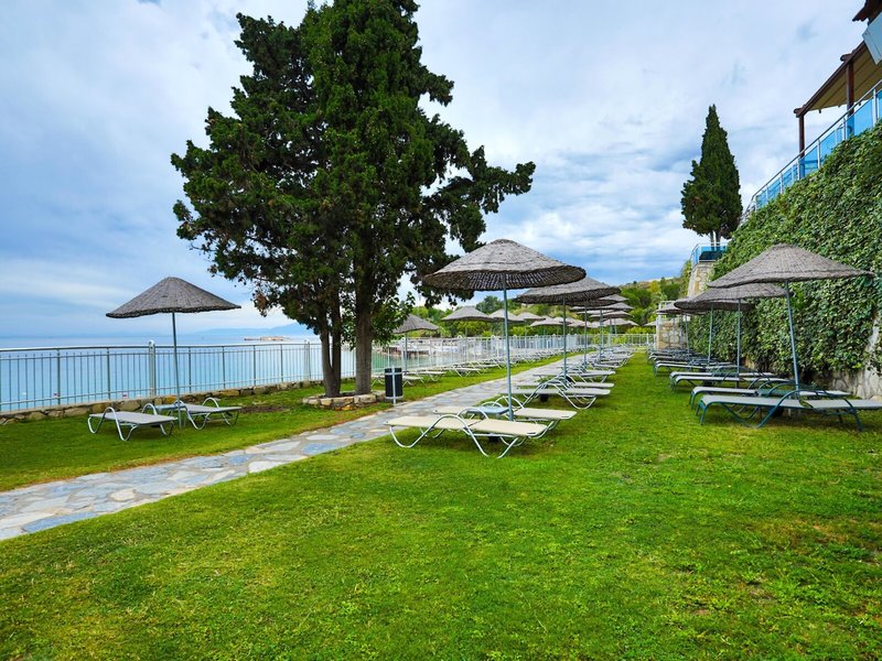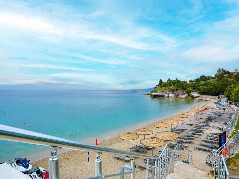 - Strand: Sand, flach abfallend, naturbelassen, Strandlänge: ca. 300 m, Treppen zum Strand, Badeplateau, privat, hoteleigen, Shuttletransfer: April - Oktober, ohne Gebühr, bei All Inclusive inklusive, Liegestühle