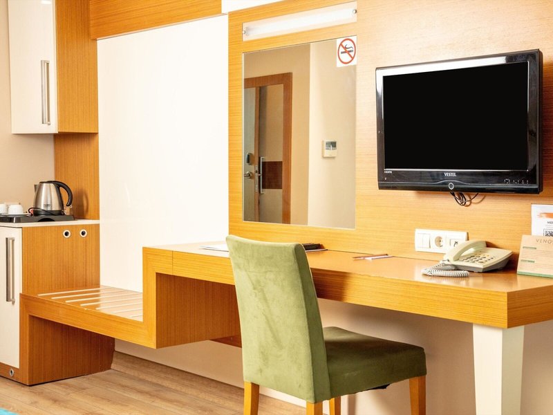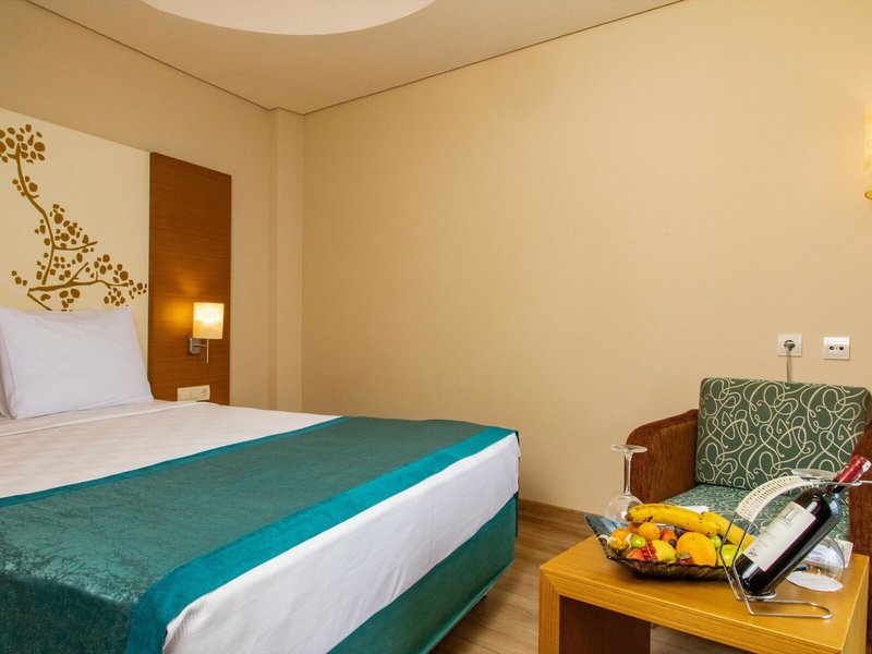 - Standard Double Sea View (DZM1), kétágyas szoba, nemdohányzó szoba, a főépületben, tengerre néző, kilátással a medencére, kb. 28 m², teljes szobaszám ebben a szobatípusban: 1, elrendezése a következő: 1 hálószoba, 2 egyszemélyes ágy (90x200 cm), 1 kanapé (75x180 cm), babaágy: térítésmentes, kérés és foglalás szükséges, légkondi: térítésmentes, központilag szabályozható, hideg, meleg, fűtés: központi szabályozható, padló: laminált, széf: ingyenes, kávéfőző, kávé/teafőző, vízforraló, minibár: ingyenes, üdítőitalok: ingyenes, víz: ingyenes, minibár feltöltése: 9:00 - 16:00, telefon, internet : WLAN/WiFi: ingyenes, televízió: síkképernyős, szobaszerviz: napi 24 óra, térítés ellenében, takarítás: naponta 8:00 - 16:30, térítésmentes, zuhany, WC, papucs: térítésmentes, hajszárító, erkély: ülőgarnitúrával, plusz költségek: villany: nincs díj, végtakarítás: nincs díj, víz: térítésmentes